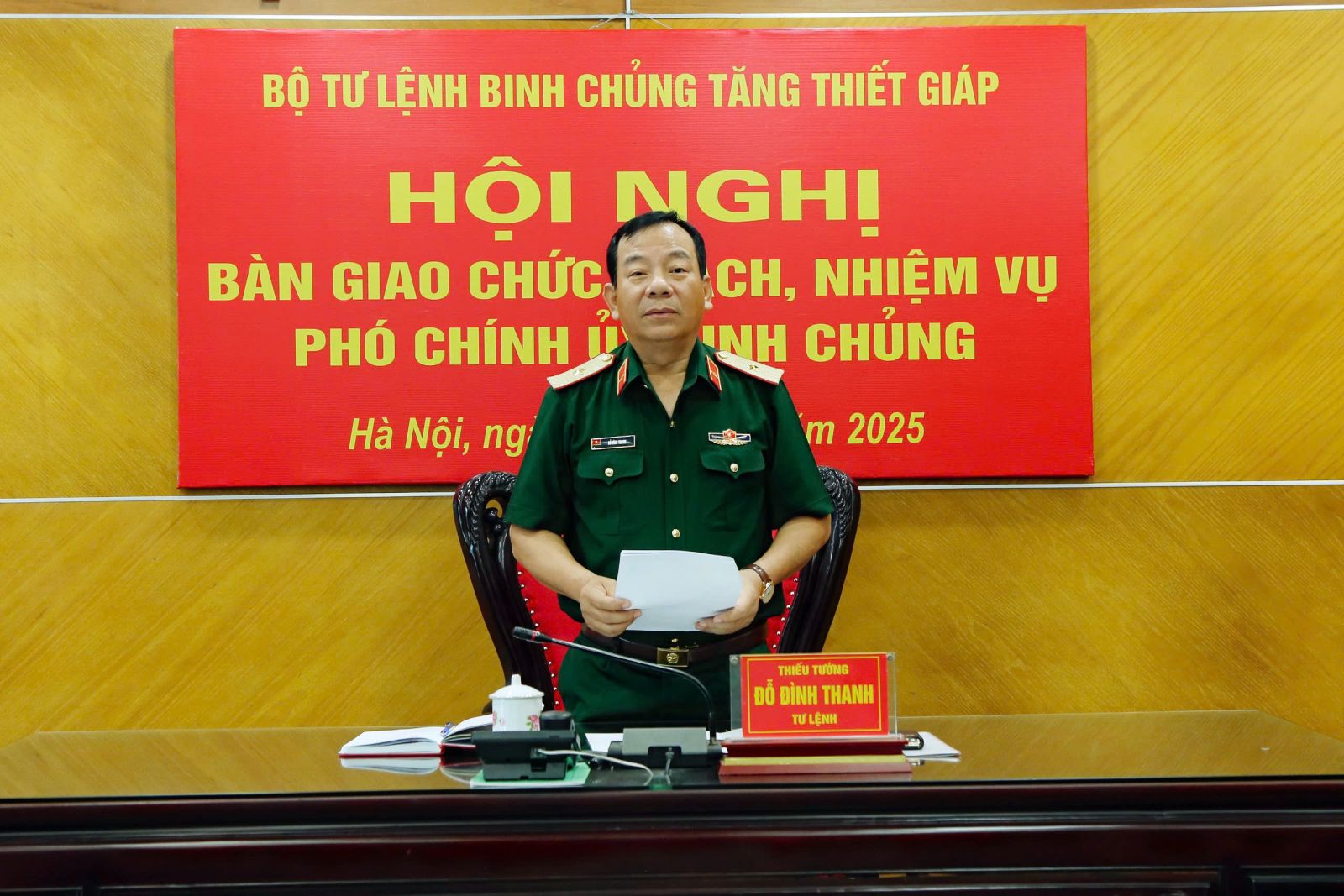 Đồng chí Thiếu tướng Đỗ Đình Thanh, Phó Bí thư Đảng ủy, Tư lệnh Binh chủng chủ trì Hội nghị bàn giao; cùng dự có Đại tá Hoàng Văn Lợi Chính ủy Binh chủng, Đại tá Hồ Viết Trương, Phó Tư lệnh, kiêm TMT Binh chủng, Đại tá Nguyễn Thiện Thanh, Phó Chính ủy BC, Đại tá Phan Hải Long, Phó Tư lệnh Binh chủng; Thủ trưởng các cơ quan Bộ Tham mưu, Cục Chính trị, Cục Hậu cần- Kỹ thuật; Chánh Văn phòng BTL và Thủ trưởng các phòng chức năng cơ quan Bộ Tư lệnh.