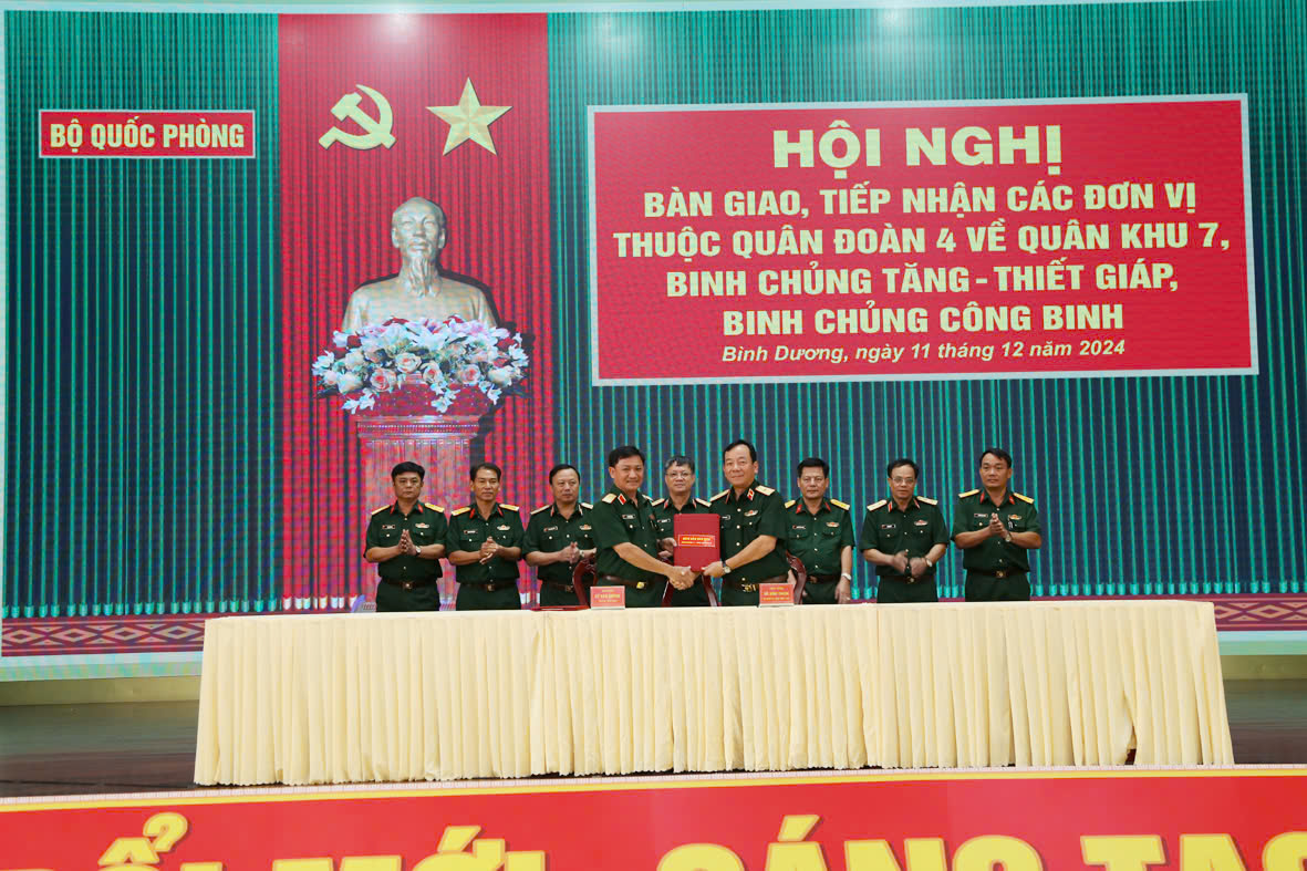 Sáng 11/12, tại Bình Dương, Bộ Quốc phòng tổ chức Hội nghị bàn giao, tiếp nhận các đơn vị thuộc Quân đoàn 4 về Quân khu 7, Binh chủng Tăng thiết giáp, Binh chủng Công binh. Thượng tướng Nguyễn Văn Nghĩa, Phó tổng Tham mưu trưởng Quân đội nhân dân Việt Nam dự, chủ trì Hội nghị.