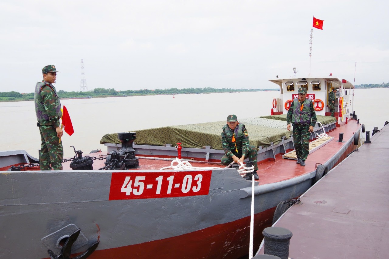 Sau khi nghe chỉ huy đơn vị báo cáo kết quả huấn luyện chuyển trạng thái sẵn sàng chiến đấu và vận chuyển hàng hoá đường thủy, đoàn công tác đã trực tiếp kiểm tra Đại đội tàu thuyền, Tiểu đoàn vận tải 987 chuẩn bị phương tiện vận chuyển; tiếp nhận vật chất hậu cần, vũ khí, trang bị kỹ thuật (hàng hoá) từ phân đội vận tải ô tô, bốc xếp, vận chuyển xuống tàu; chỉ huy đội hình tàu hành quân vận chuyển hàng hoá; tàu cập bến, neo đậu, trả hàng an toàn.
