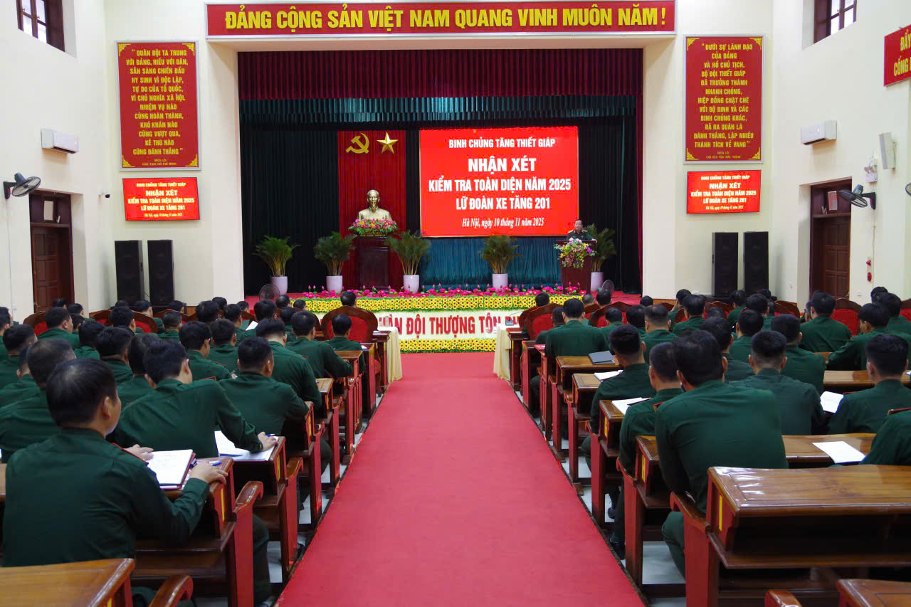 Ngày 10/11/2025 Đoàn công tác của, Binh chủng do đồng chí Thiếu tướng Đỗ Đình Thanh, Tư lệnh Binh chủng làm trưởng đoàn đã tiến hành kiểm tra toàn diện các mặt công tác của Lữ đoàn xe tăng 201. Tham gia Đoàn kiểm tra có đồng chí Thiếu tướng Hoàng Văn Lợi, Chính ủy Binh chủng cùng Thủ thưởng, cán bộ các cơ quan Bộ Tư lệnh.