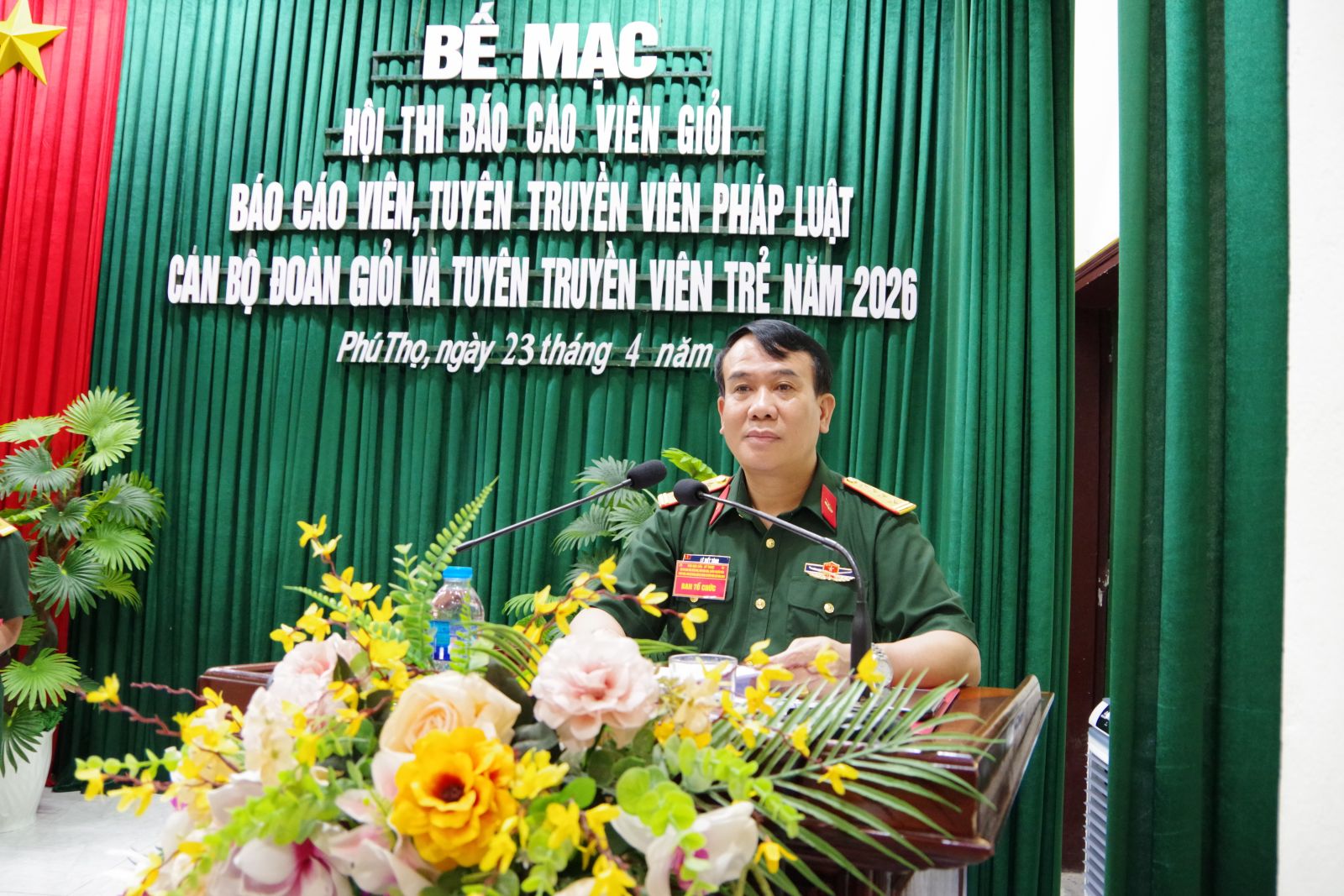 Trong thời gian 3 ngày (từ ngày 20 đến 22/4/2026), cán bộ dự thi đã hoàn thành tốt các nội dung thi, tập trung vào tuyên truyền, cụ thể hóa, tổ chức thực hiện Nghị quyết Đại hội XIV của Đảng; Nghị quyết Đại hội Đảng bộ Quân đội, Binh chủng lần thứ XII; các chuyên đề phổ biến, giáo dục pháp luật; Nghị quyết và Chương trình hành động thực hiện Nghị quyết Đại hội Đoàn các cấp... Nhiều phần thi được chuẩn bị công phu, có sự đầu tư về nội dung và hình thức, thể hiện rõ bản lĩnh, phương pháp, tác phong của đội ngũ báo cáo viên, tuyên truyền viên và cán bộ Đoàn các cấp, đáp ứng yêu cầu, nhiệm vụ trong tình hình mới.