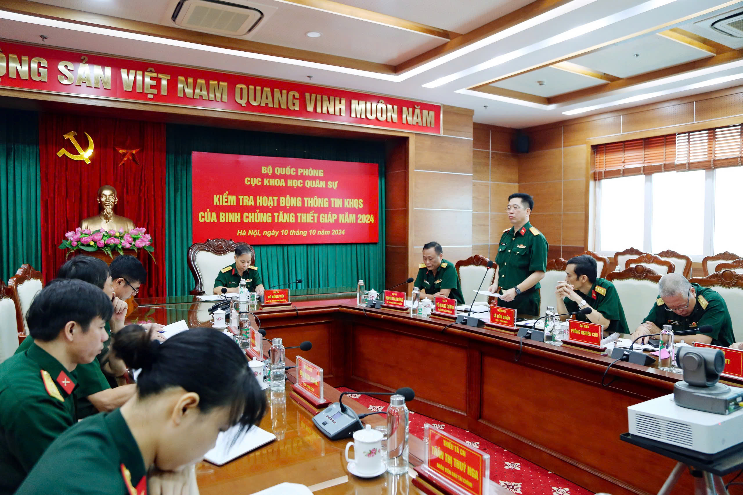 Sau khi nghe Đại tá Vũ Quang Cường, Trưởng phòng Khoa học Quân sự báo cáo khái quát kết quả thực hiện nhiệm vụ thông tin KHQS của Binh chủng từ 01/2022 đến 10/2024, Đoàn công tác đã tiến hành kiểm tra thực tế hoạt động thông tin KHQS của Binh chủng.