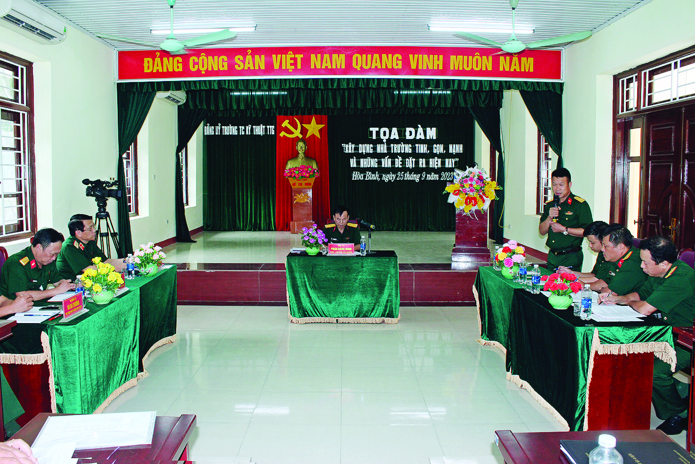Chiều ngày 25/9/2023 Đảng ủy Trường Trung cấp Kỹ thuật TTG tổ chức Tọa đàm “Xây dựng Nhà trường tinh, gọn, mạnh và những vấn đề đặt ra hiện nay”. Đồng chí Thiếu tướng Nguyễn Đức Dinh, Bí thư Đảng ủy, Chính ủy Binh chủng dự và trực tiếp chỉ đạo buổi tọa đàm.
