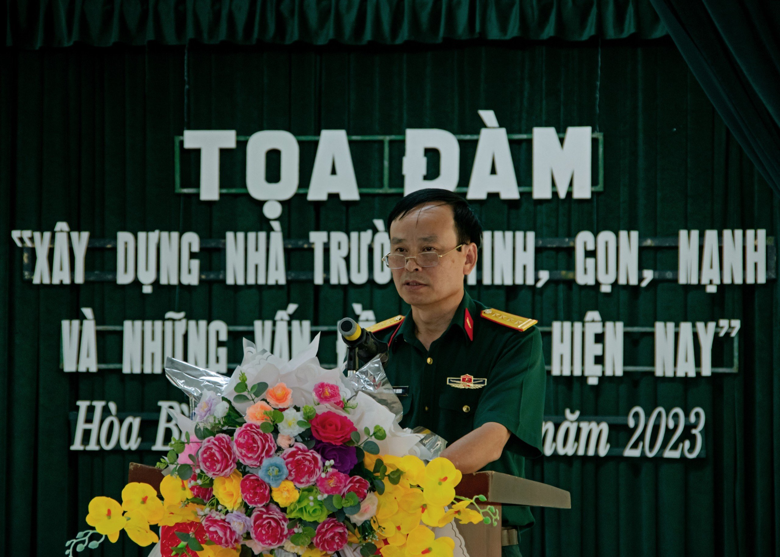 Phát biểu kết luận tọa đàm, Đại tá Phan Đăng Minh, Bí thư Đảng ủy, Chính uỷ Nhà trường khẳng định, xây dựng quân đội tinh, gọn, mạnh, tiến lên hiện đại là chủ trương nhất quán, đúng đắn của Đảng và Nhà nước ta. Thực hiện chủ trương này sẽ bảo đảm cho quân đội ta có đủ sức mạnh, hoàn thành tốt vai trò là lực lượng nòng cốt trong sự nghiệp củng cố quốc phòng, an ninh, bảo vệ vững chắc Tổ quốc Việt Nam xã hội chủ nghĩa. Đây cũng chính là cơ sở quan trọng để thực hiện quan điểm bảo vệ Tổ quốc “từ sớm, từ xa” theo kế sách “chủ động giữ nước từ khi nước chưa nguy” của Đảng ta. Xây dựng Nhà trường tinh, gọn, mạnh là ba nội dung (vấn đề) khác nhau nhưng có mối quan hệ chặt chẽ, khăng khít với nhau, nên trong quá trình tổ chức thực hiện không được xem nhẹ bất cứ nội dung nào. Phải tập trung tuyên truyền, giáo dục, thống nhất nhận thức, đề cao trách nhiệm trong tổ chức thực hiện; tích cực xây dựng Nhà trường chấp hành nghiêm kỷ luật, pháp luật; điều chỉnh, kiện toàn tổ chức, biên chế, bảo đảm phù hợp với chức năng, nhiệm vụ, trong điều kiện mới; gắn xây dựng Nhà trường tinh, gọn, mạnh với đổi mới nâng cao chất lượng công tác huấn luyện, đào tạo; phát huy vai trò tự lực, tự cường, bảo đảm kịp thời, đầy đủ vật chất, trang bị hậu cần, tình trạng VKTBKT đáp ứng yêu cầu nhiệm vụ chính trị của Nhà trường.