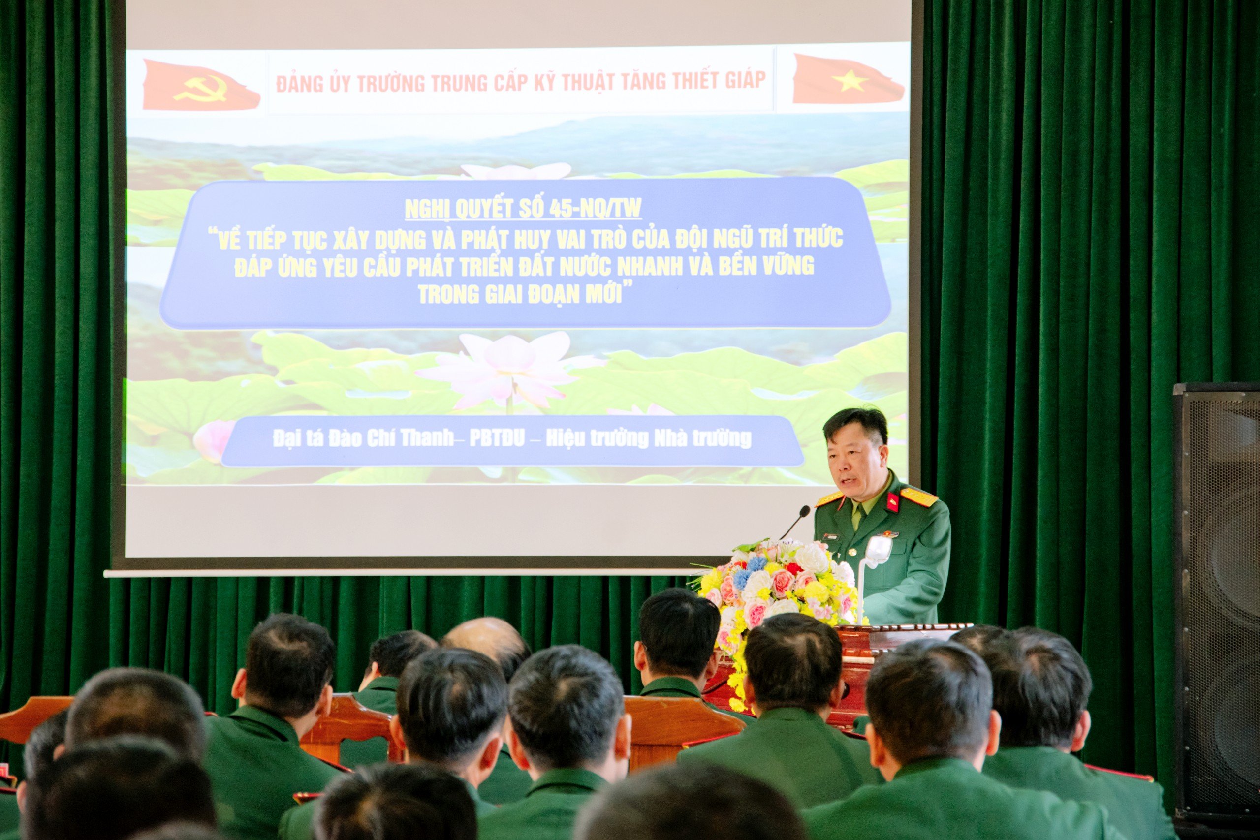 Tại hội nghị, Đại tá Phan Đăng Minh, Bí thư Đảng ủy, Chính ủy Nhà trường giới thiệu chuyên đề: "Tiếp tục đổi mới, nâng cao chất lượng chính sách xã hội, đáp ứng yêu cầu sự nghiệp xây dựng và bảo vệ Tổ quốc trong giai đoạn mới" và chuyên đề "Tiếp tục phát huy truyền thống đại đoàn kết dân tộc, xây dựng đất nước ta ngày càng giàu mạnh, phồn vinh, hạnh phúc"; Đại tá Đào Chí Thanh, Phó Bí thư Đảng ủy, Hiệu trưởng Nhà trường giới thiệu chuyên đề "Chiến lược bảo vệ Tổ quốc trong tình hình mới" và chuyên đề: “Tiếp tục xây dựng và phát huy vai trò của đội ngũ trí thức đáp ứng yêu cầu phát triển đất nước nhanh và bền vững trong giai đoạn mới”.