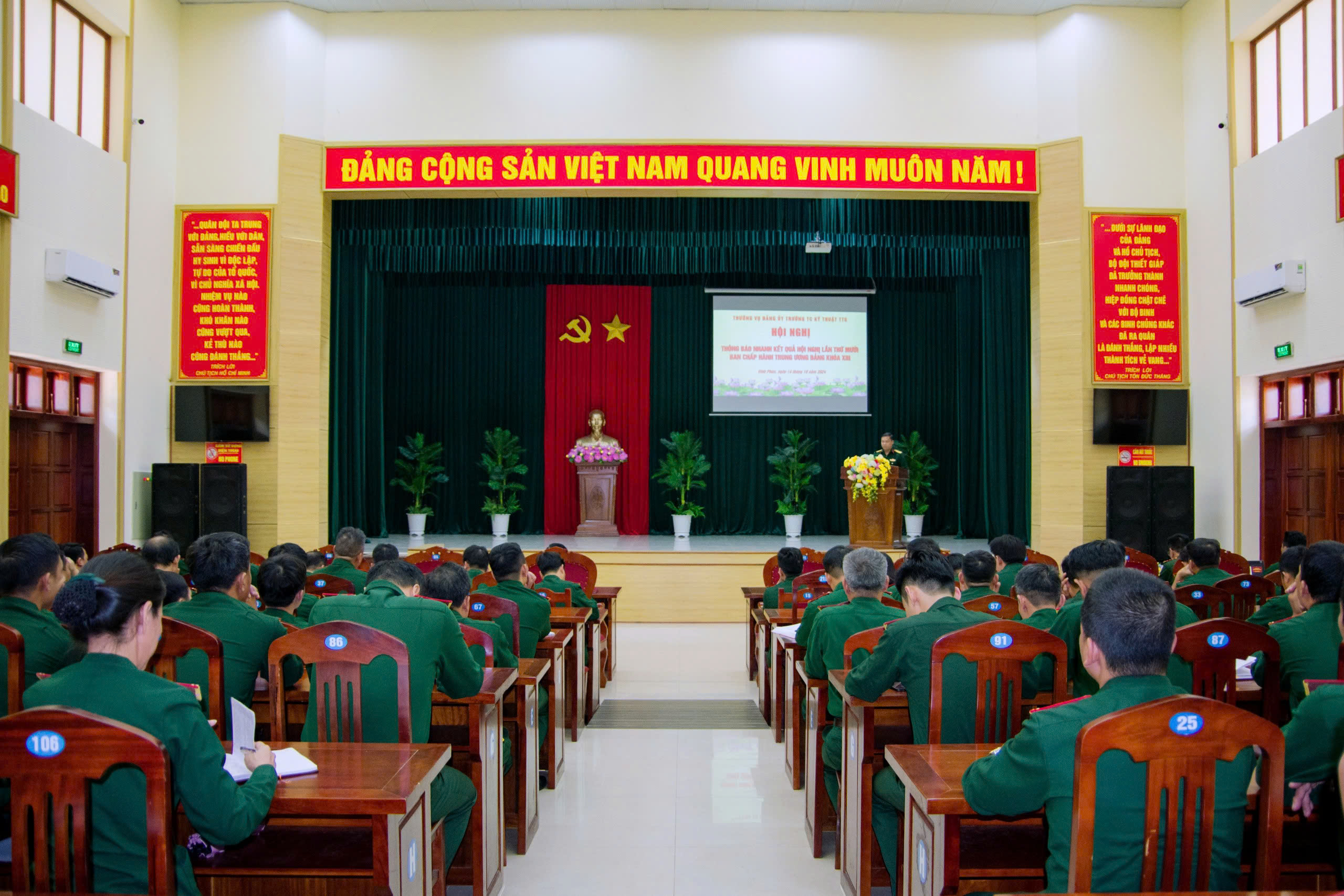 Tại hội nghị, các đại biểu được nghe đồng chí Đại tá Phan Đăng Minh, Bí thư Đảng ủy, Chính ủy Nhà trường thông báo nhanh những nội dung cốt lõi, trọng tâm của Hội nghị lần thứ 10 Ban Chấp hành Trung ương Đảng khóa XIII.