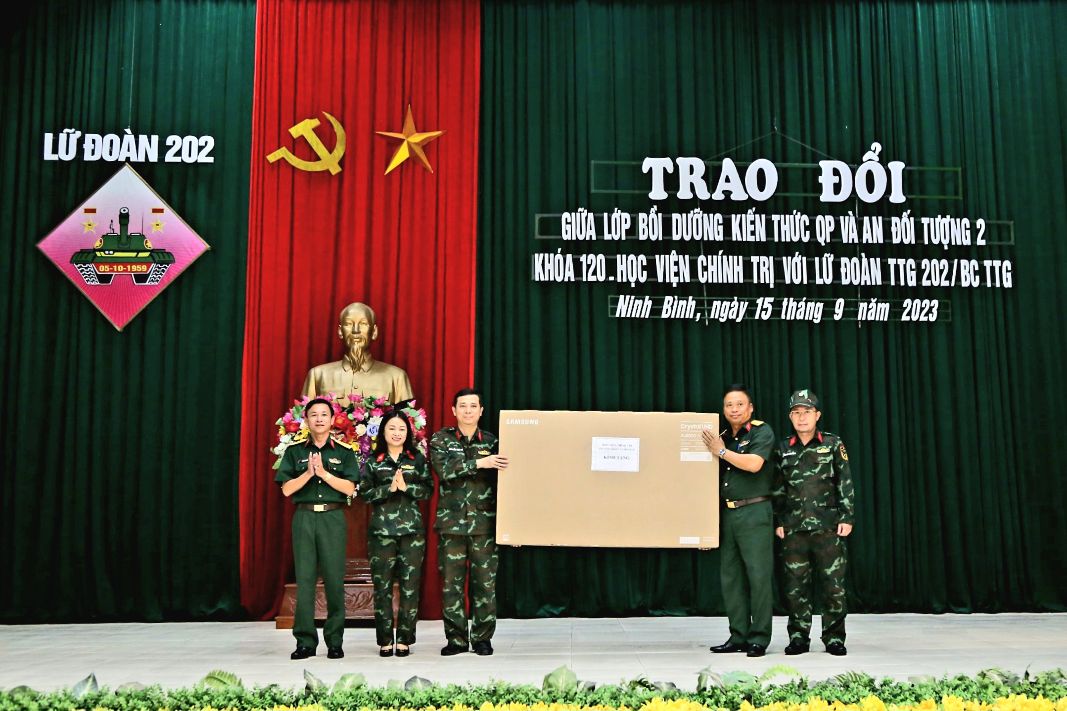 Sáng 15.9, Đoàn cán bộ, giảng viên, học viên lớp bồi dưỡng kiến thức Quốc phòng và An ninh đối tượng 2 (khóa 120) Học viện Chính trị do Thiếu tướng Vũ Đức Long, Phó Chính ủy Học viện làm trưởng đoàn đã đến tham quan, học tập, nghiên cứu thực tế tại Lữ đoàn xe tăng 202, Binh chủng Tăng thiết giáp.
