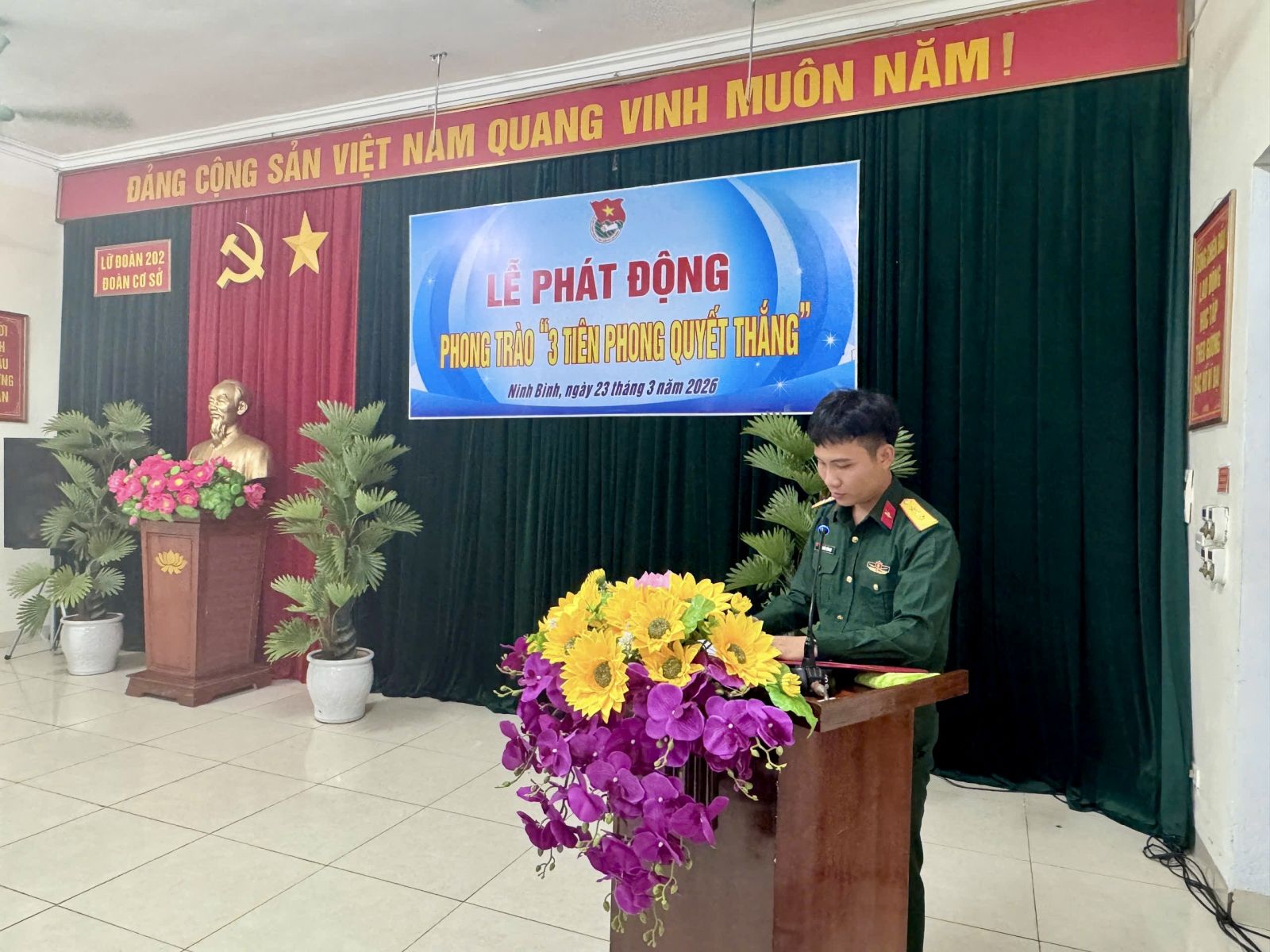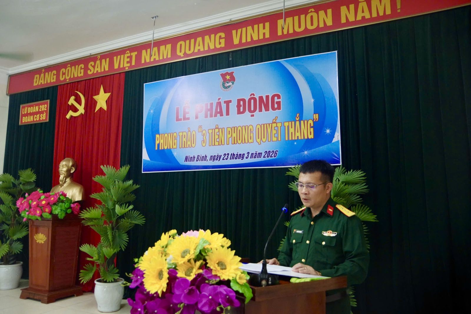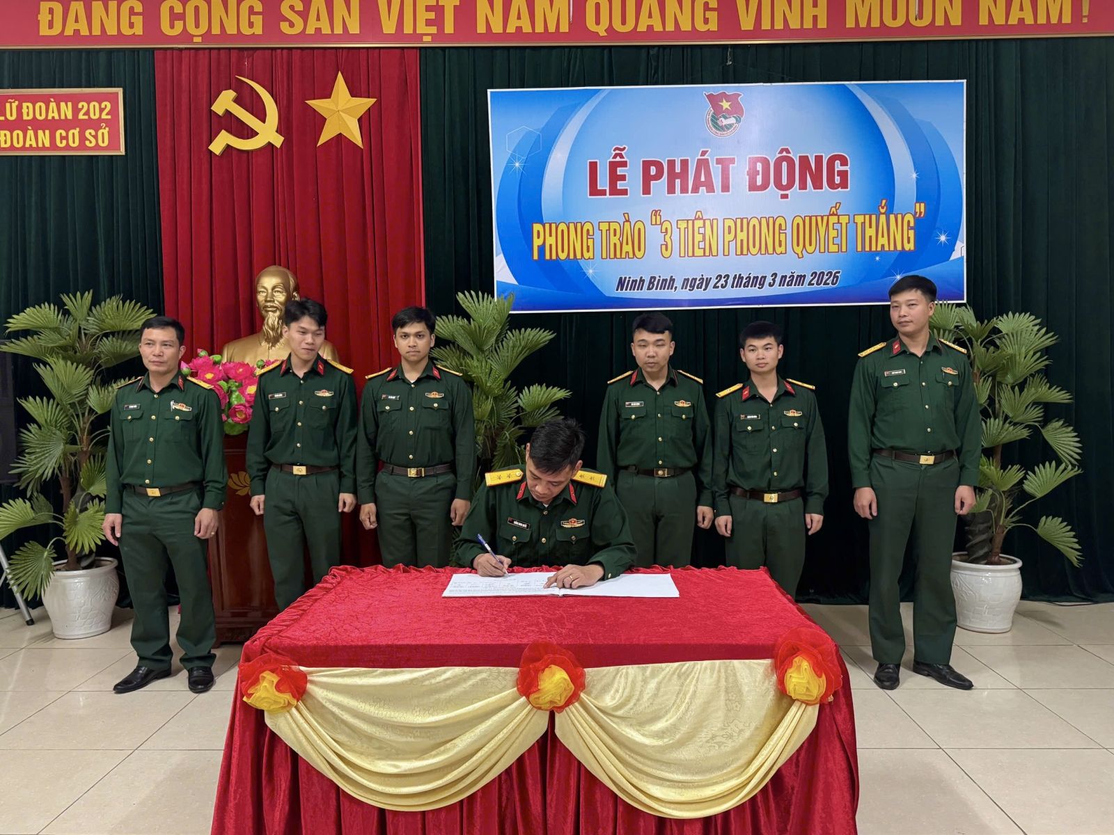 Tối ngày 23/3/2026, Đoàn cơ sở Lữ đoàn 202 tổ chức Lễ phát động Phong trào “3 Tiên phong quyết thắng” giai đoạn 2025 - 2030. Dự và chỉ đạo Lễ phát động có đồng chí Thượng tá Nguyễn Văn Huân - Phó Chính ủy Lữ đoàn, cùng dự có các đồng chí thủ trưởng cơ quan, chỉ huy đơn vị và toàn thể cán bộ, đoàn viên thanh niên Đoàn cơ sở.