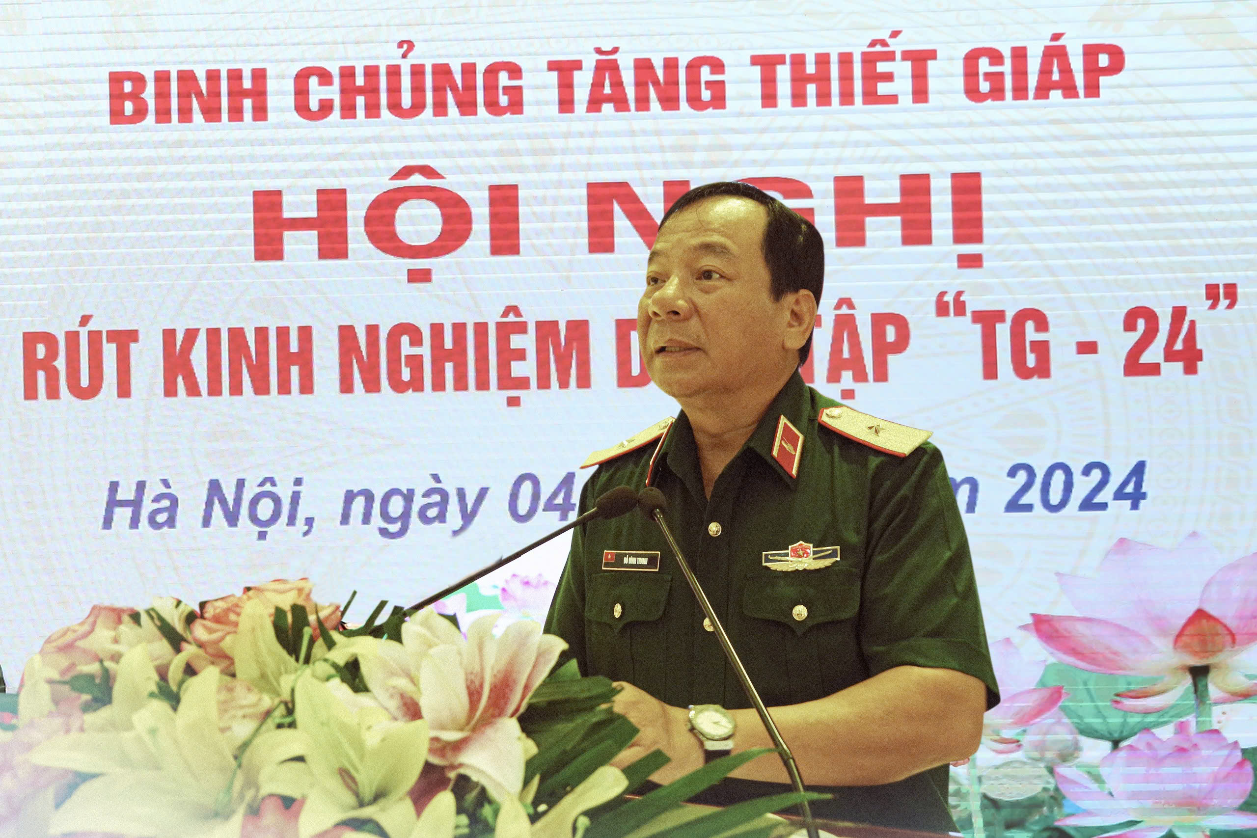 Sáng 4.9, Binh chủng Tăng thiết giáp tổ chức Hội nghị rút kinh nghiệm diễn tập CH-TM 1 bên 2 cấp trên bản đồ và ngoài thực địa có một phần thực binh cho chỉ huy, cơ quan Bộ Tư lệnh và các đơn vị (diễn tập mang mật danh “TG-24”).