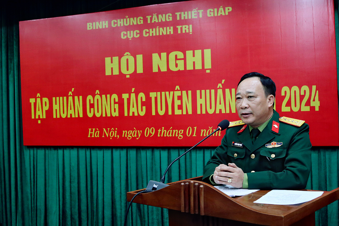 Sáng 9.1, Binh chủng Tăng thiết giáp tổ chức Hội nghị tập huấn công tác Tuyên huấn năm 2024 (bằng hình thức trực tiếp kết hợp với trực tuyến tại 10 điểm cầu trong toàn Binh chủng).