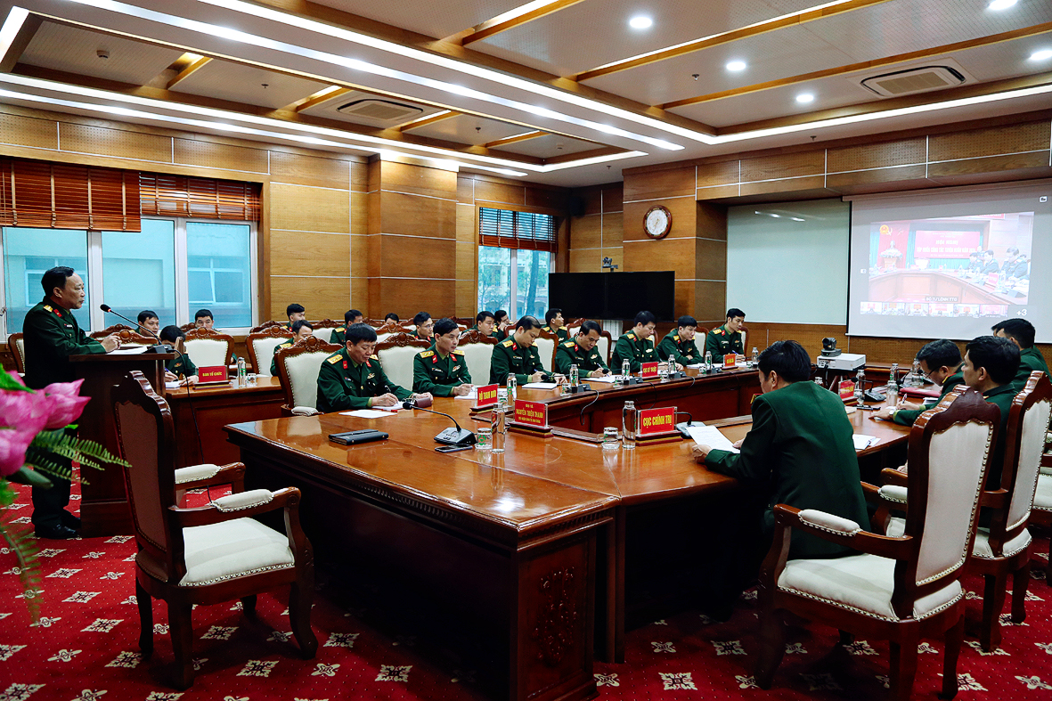 Đồng chí Đại tá Nguyễn Thiện Thanh, Chủ nhiệm Chính trị Binh chủng dự và chủ trì Hội nghị.