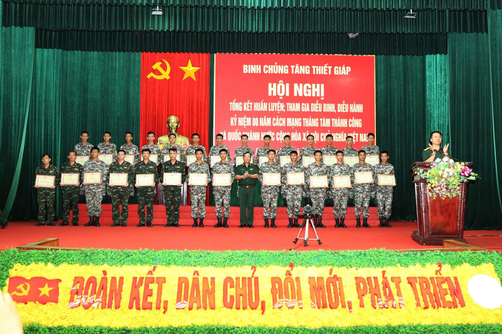 Cũng trong dịp này, Thủ trưởng Bộ Tư lệnh Binh chủng đã trao Bằng khen cho 07 tập thể và 149 cá nhân đạt thành tích xuất sắc trong thực hiện nhiệm vụ diễu binh, diễu hành kỷ niệm 80 năm Cách mạng tháng Tám thành công và Quốc khánh 2.9; đề nghị tặng Bằng khen của Bộ Quốc phòng cho 05 tập thể 144 cá nhân; Bằng khen của Tổng cục Chính trị Quân đội Nhân dân Việt Nam cho 03 tập thể, 04 cá nhân; đề nghị tặng Bằng khen của Bộ Tổng Tham mưu cho 14 tập thể và 196 cá nhân.