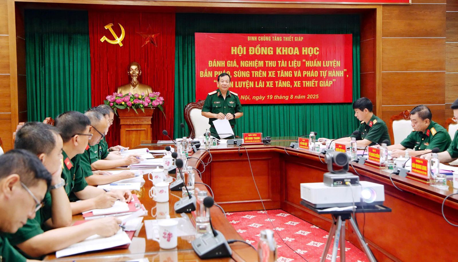 Chiều 19.8, tại Hà Nội, Binh chủng Tăng thiết giáp tổ chức Hội đồng khoa học đánh giá, nghiệm thu 02 tài liệu “Huấn luyện bắn pháo, súng trên xe tăng và pháo tự hành” và “Huấn luyện lái xe tăng, xe thiết giáp”.