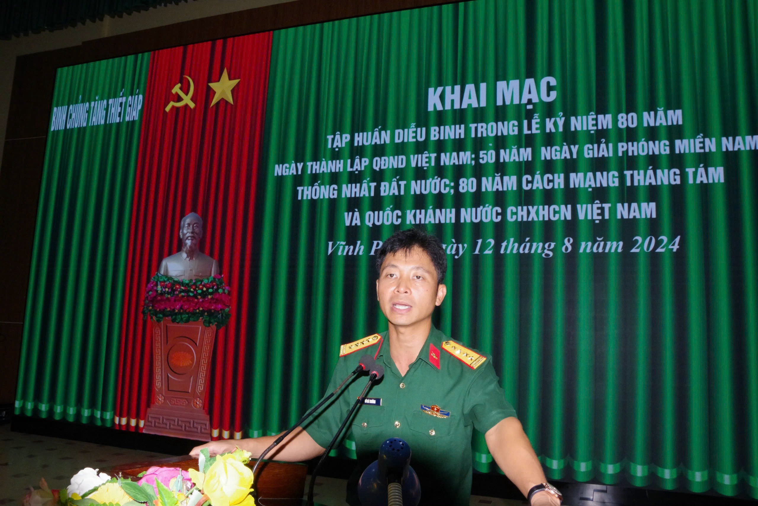Sáng 12/8, tại Trường Sĩ quan Tăng thiết giáp, Binh chủng Tăng thiết giáp tổ chức Khai mạc tập huấn diễu binh kỷ niệm 80 năm Ngày thành lập QĐND Việt Nam; 50 năm Ngày giải phóng miền Nam thống nhất đất nước; 80 năm Cách mạng tháng Tám và Quốc khánh Nước CHXHCNVN.