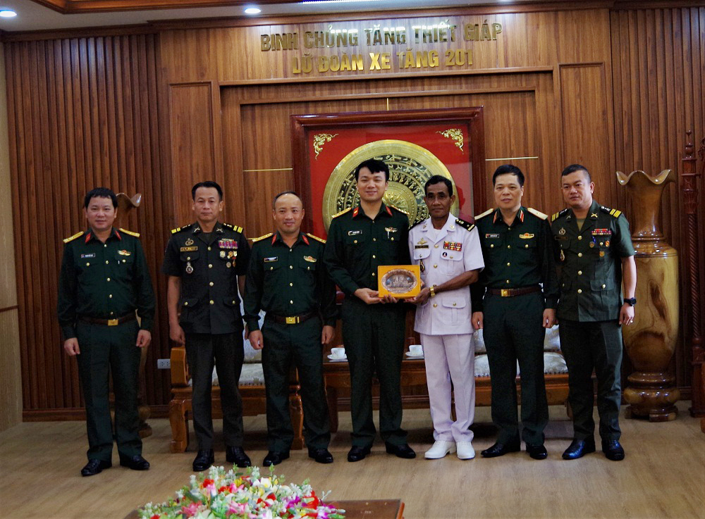 Tại đơn vị, sau khi nghe Đại tá Lê Xuân Thành, Chính ủy Lữ đoàn giới thiệu khái quát về lịch sử truyền thống, quá trình 52 năm xây dựng, chiến đấu và trưởng thành của Lữ đoàn, chức năng, nhiệm vụ, những kết quả nổi bật trên các mặt công tác nhất là trong thực hiện nhiệm vụ công tác chính trị của đơn vị thời gian qua. Lớp bồi dưỡng ngắn hạn Sĩ quan cao cấp Quân đội Hoàng gia Campuchia đã đi tham quan thực tế cảnh quan môi trường đơn vị, nơi ăn ở sinh hoạt của bộ đội, khu tăng gia tập trung tại tiểu đoàn xe tăng 3; tham quan phòng truyền thống Lữ đoàn và trao đổi kinh nghiệm hoạt động công tác chính trị giữa Lữ đoàn xe tăng 201 và lớp bồi dưỡng ngắn hạn Sĩ quan cao cấp Quân đội Hoàng gia Campuchia (khóa 13). Qua trao đổi, học tập, nghiên cứu thực tế tại đơn vị, Lớp học đã thu được những kết quả tốt đẹp, đây chính là cơ sở để các học viên có thêm kinh nghiệm thực tiễn, hiểu biết sâu sắc về đất nước, Quân đội, con người Việt Nam, góp phần củng cố tăng cường hơn nữa tình đoàn kết, hữu nghị, hợp tác giữa Quân đội 2 nước nói riêng, nhân dân 2 nước Việt Nam- Campuchia nói chung.