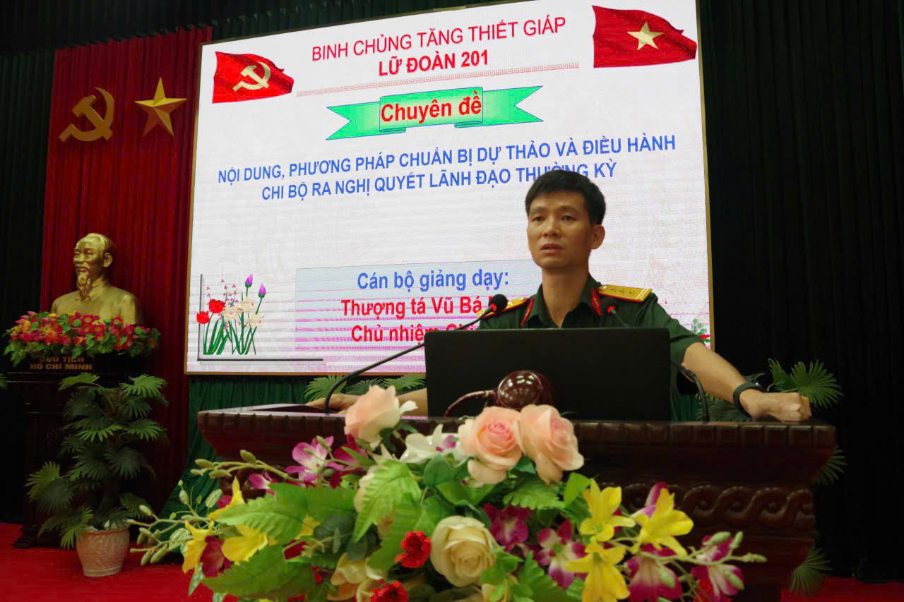 Từ ngày 23 đến 25/7/2025, Lữ đoàn xe tăng 201, tổ chức tập huấn cán bộ giai đoạn 2 năm 2025. Tập huấn là dịp để kịp thời bồi dưỡng cho đội ngũ cán bộ các cấp trong Lữ đoàn về tổ chức, phương pháp huấn luyện, góp phần nâng cao chất lượng huấn luyện giai đoạn 2 năm 2025 và những năm tiếp theo. Nhận thức đúng vị trí, vai trò, tầm quan trọng của công tác tập huấn cán bộ, Đảng ủy, BCH Lữ đoàn, Ban Tổ chức lớp tập huấn đã quan tâm lãnh đạo, chỉ đạo chuẩn bị đầy đủ giáo án, tài liệu, cơ sở vật chất, TBKT cho tập huấn; đội ngũ cán bộ huấn luyện đã chủ động, tích cực thục luyện giáo án, kịp thời cập nhật những nội dung mới, phù hợp với yêu cầu thực tiễn của đơn vị. Ban tổ chức lớp học đã điều hành thực hiện nghiêm Kế hoạch và hoàn thành chương trình tập huấn.