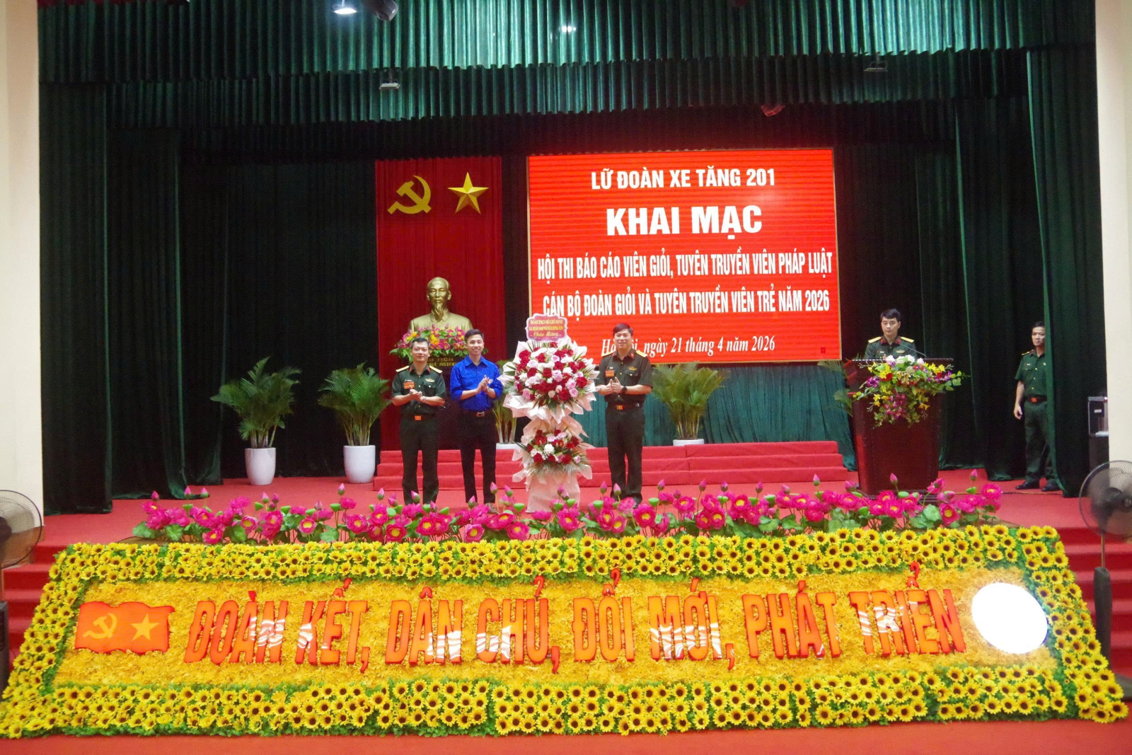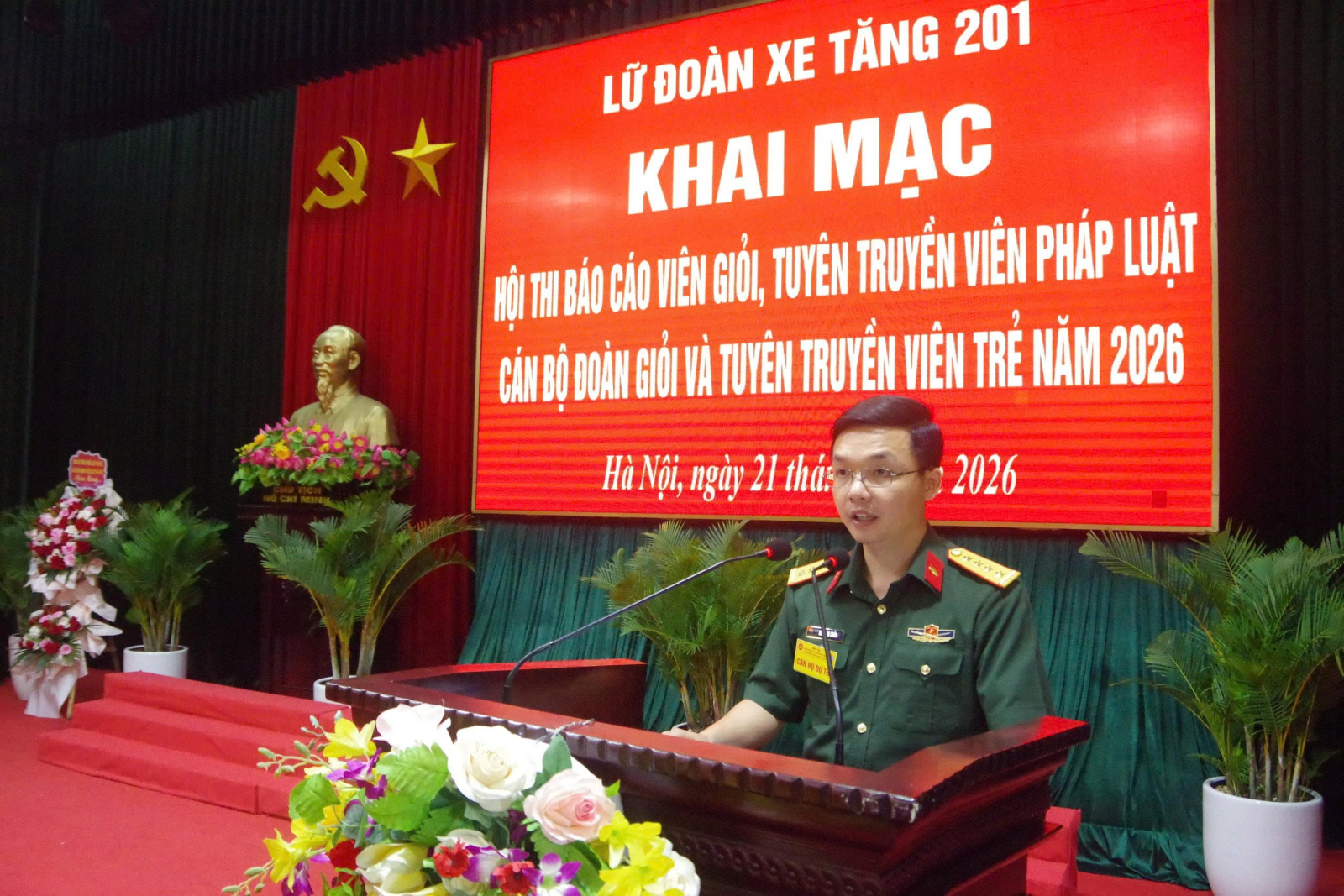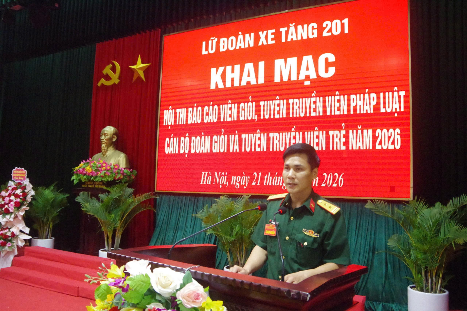 Sáng ngày 21/4/2026, Lữ đoàn xe tăng 201 đã tổ chức khai mạc Hội thi báo cáo viên giỏi năm 2026. Đồng chí Đại tá Đỗ Hà Hoàn - Ủy viên Thường vụ, Chủ nhiệm Chính trị Binh chủng dự và chỉ đạo; tham dự có đại biểu Phòng Tuyên huấn, Ban Công tác quần chúng/Cục Chính trị Binh chủng cùng các đồng chí trong Đảng ủy, Chỉ huy Lữ đoàn, Thủ trưởng các cơ quan, đơn vị và đông đảo cán bộ, chiến sĩ Lữ đoàn.