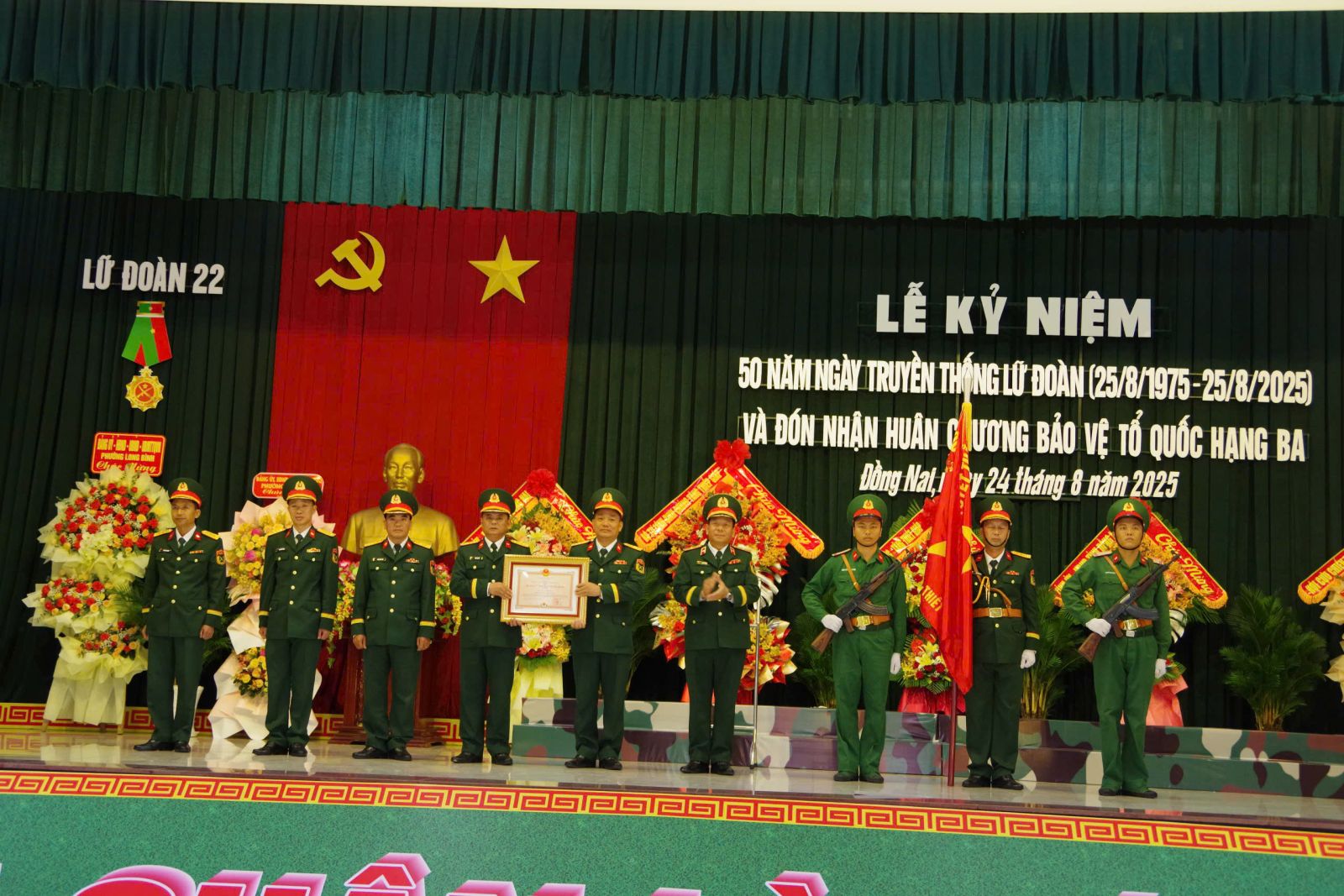 Trong không khí phấn khởi, tự hào cùng cả nước thi đua lập thành tích chào mừng 80 năm Cách mạng Tháng Tám và Quốc khánh 02/9, ngày 24/8/2025, tại tỉnh Đồng Nai, Lữ đoàn TTG 22 đã long trọng tổ chức Lễ kỷ niệm 50 năm ngày truyền thống Lữ đoàn (25/8/1975 - 25/8/2025) và đón nhận Huân chương Bảo vệ Tổ quốc hạng Ba. Thiếu tướng Đỗ Đình Thanh, Tư lệnh Binh chủng Tăng thiết giáp đến dự, chỉ đạo và phát biểu chúc mừng. Cùng dự buổi lễ có: Các Anh hùng Lực lượng Vũ trang nhân dân; các đồng chí nguyên là Thủ trưởng Bộ Tư lệnh Quân đoàn 4 (nay là Quân đoàn 34) qua các thời kỳ, Thủ trưởng các cơ quan Bộ Tư lệnh Binh chủng Tăng thiết giáp, các Lữ đoàn, Nhà trường, Cơ quan Thường trực phía Nam; đại biểu các cơ quan, đơn vị đóng quân trên địa bàn; đại biểu lãnh đạo, UBND tỉnh Đồng Nai; các ban, nghành, chính quyền địa phương, đơn vị kết nghĩa ... cùng lãnh đạo, Chỉ huy và cán bộ chiến Lữ đoàn TTG 22.