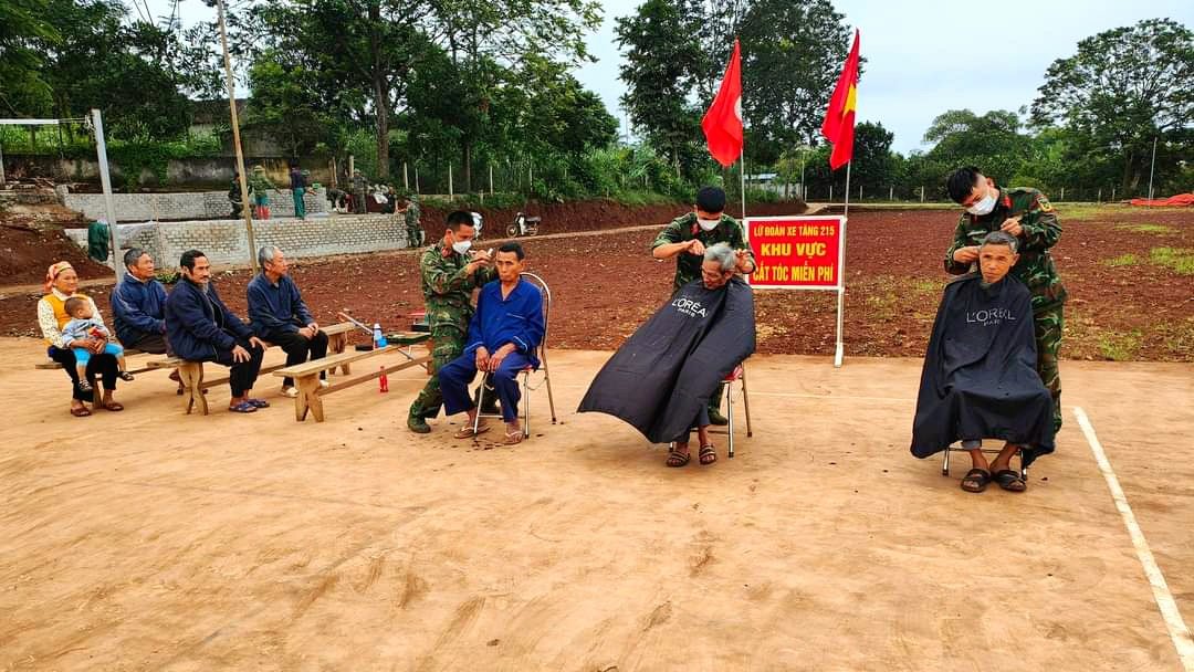 Tại đây, cán bộ, chiến sĩ Lữ đoàn xe tăng 215, và Lữ đoàn Tăng thiết giáp 202 đã tổ chức tu sửa đường giao thông liên thôn, đào đắp, nạo vét kênh mương, làm đẹp cảnh quan vệ sinh môi trường, trồng cây, thu gom rác thải khu vực dân sinh; khu vực Trường mầm non; trạm y tế; xây dựng đổ bê tông công trình khu vực nhà văn hóa, sân vận động; thực hiện chương trình cắt tóc, khám bệnh phát thuốc miễn phí, tham gia các hoạt động động giao lưu văn nghệ, thể dục thể thao với Đoàn Thanh niên, Hội phụ nữ địa phương; tặng quà các gia đình chính sách, gia đình có hoàn cảnh khó khăn trên trên địa bàn đơn vị đóng quân.