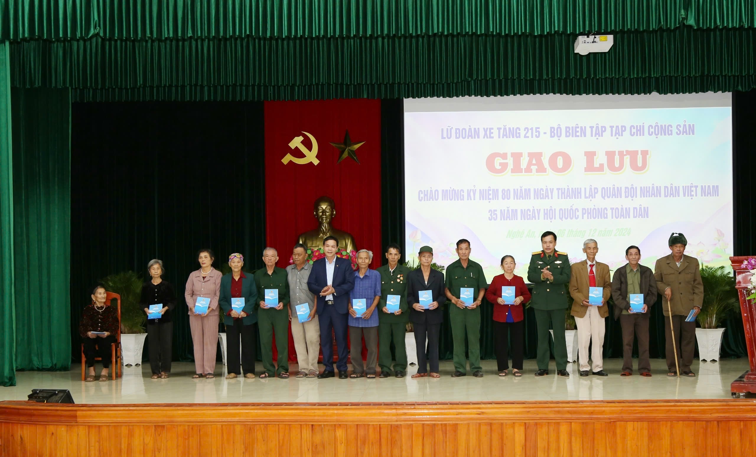 Chiều 6/12, tại Nghệ An, Lữ đoàn xe tăng 215, Binh chủng Tăng thiết giáp và Tạp chí Cộng sản tổ chức các hoạt động giao lưu văn hóa văn nghệ, thể dục thể thao, tặng quà các đối tượng chính sách nhân dịp kỷ niệm 80 năm ngày thành lập QĐND Việt Nam (22/12/1944 - 22/12/2024) và 35 năm ngày Hội Quốc phòng toàn dân (22/12/1989-22/12/2024).