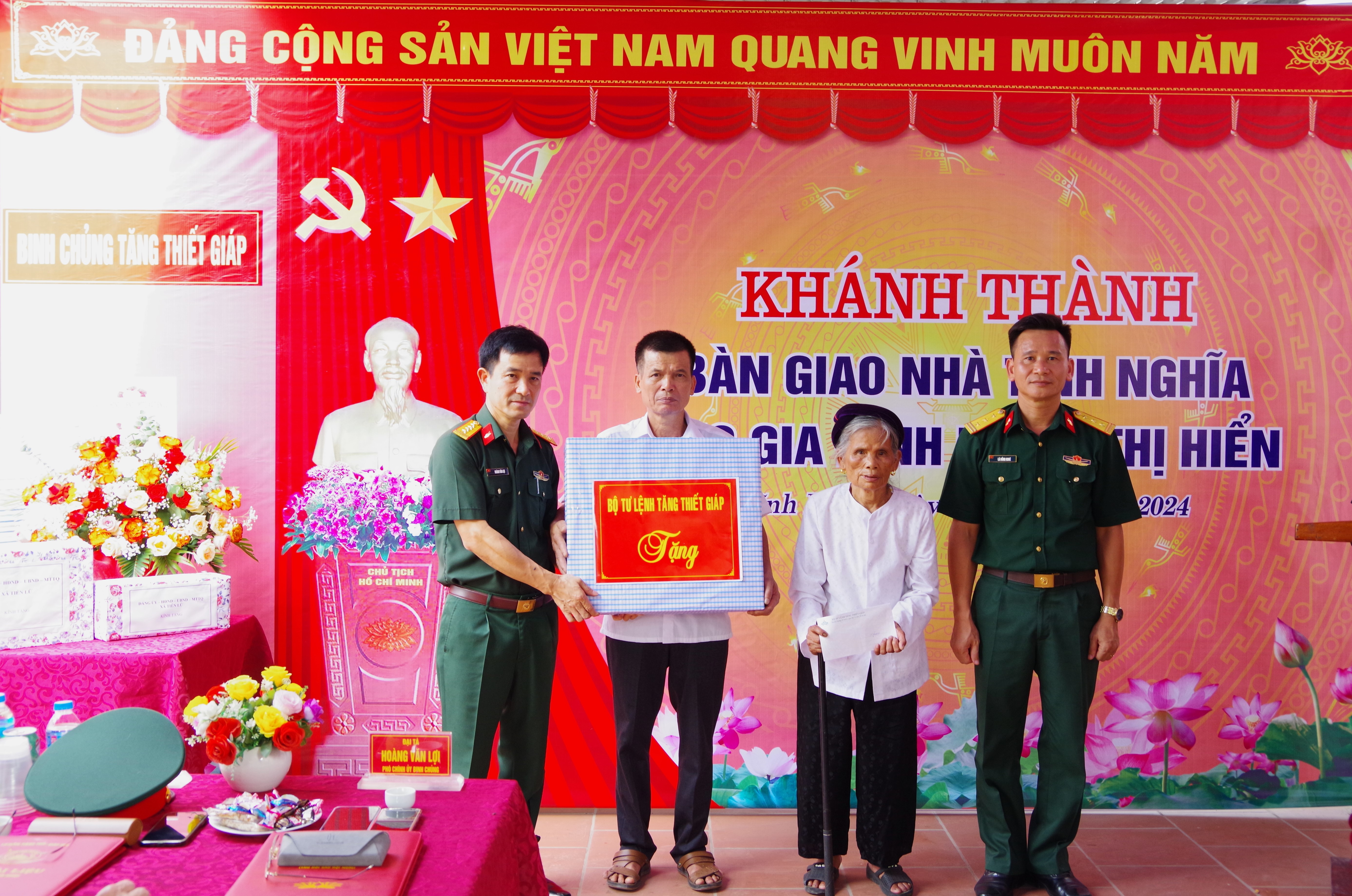 Phát biểu tại buổi khánh thành, bàn giao nhà, đồng chí Phó Chính uỷ Binh chủng khẳng định công trình nhà tình nghĩa được khánh thành nhân dịp kỷ niệm 77 năm Ngày Thương binh liệt sĩ, chứa đựng lòng biết ơn, tình cảm sâu sắc “uống nước nhớ nguồn” và là sự tri ân của cán bộ, chiến sĩ Binh chủng Tăng thiết giáp nói chung và Lữ đoàn Tăng thiết giáp 202 nói riêng đối với gia đình có công với cách mạng, là minh chứng cho tinh thần đoàn kết, nghĩa tình quân dân gắn bó máu thịt, thiết thực góp phần nâng cao đời sống vật chất, động viên tinh thần đối với gia đình bà Đỗ Thị Hiển.