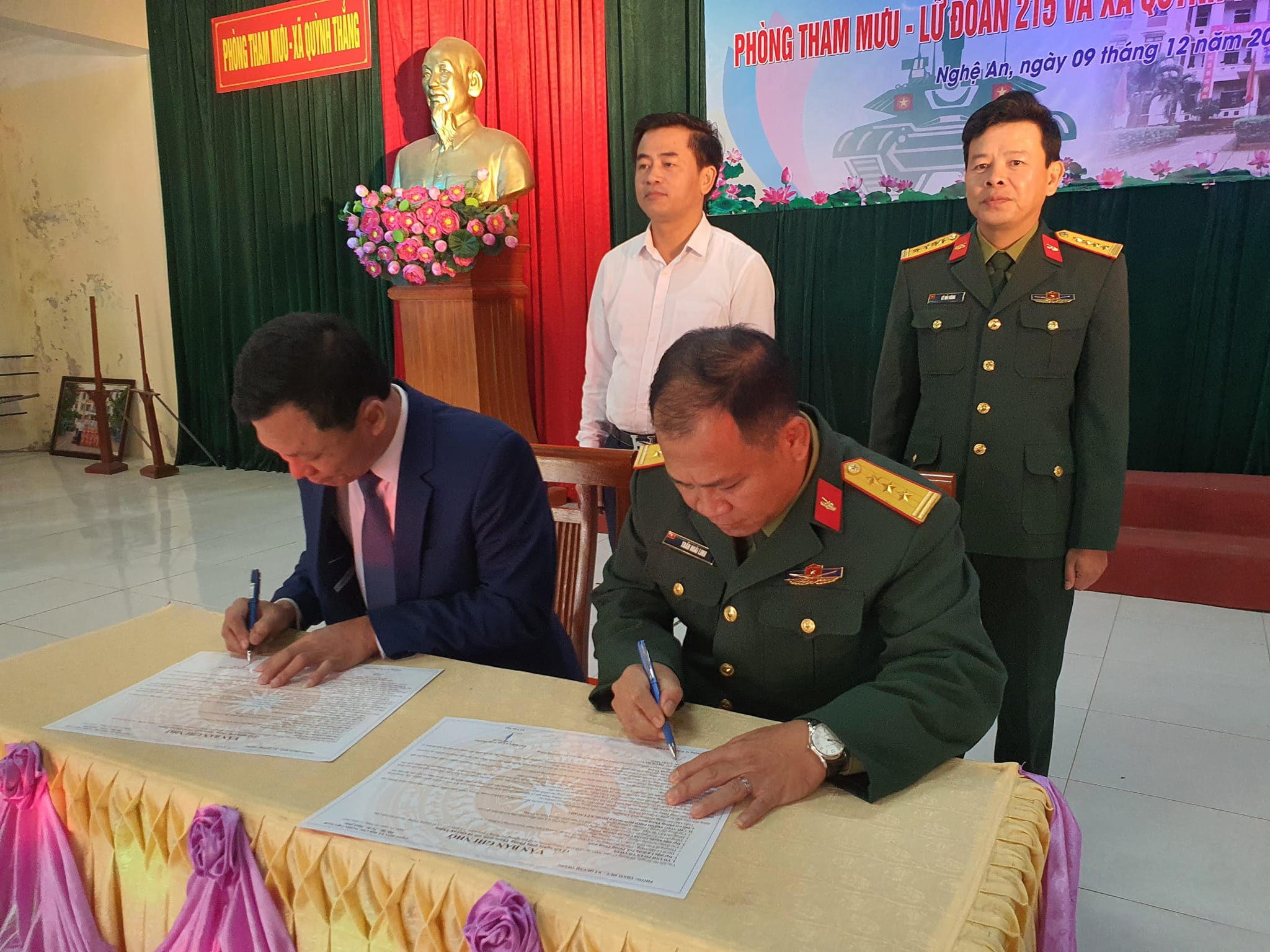 Sáng 9/12, Phòng Tham mưu, Lữ đoàn xe tăng 215 và xã Quỳnh Thắng, huyện Quỳnh Lưu tổ chức Lễ kết nghĩa phối hợp các chương trình hoạt động.