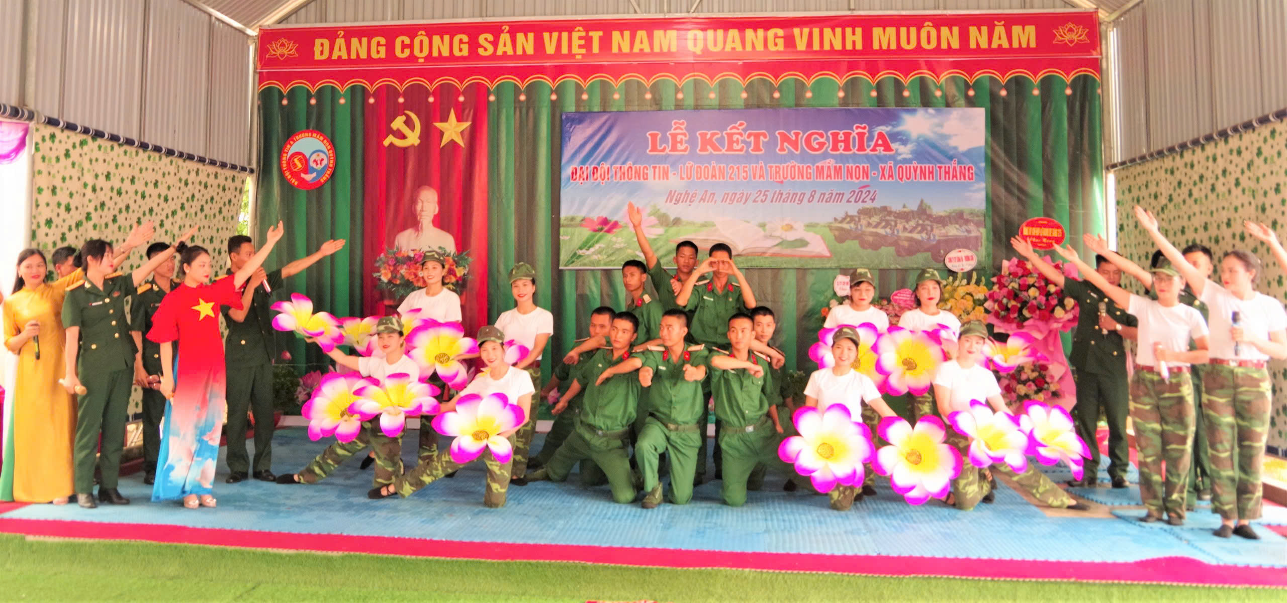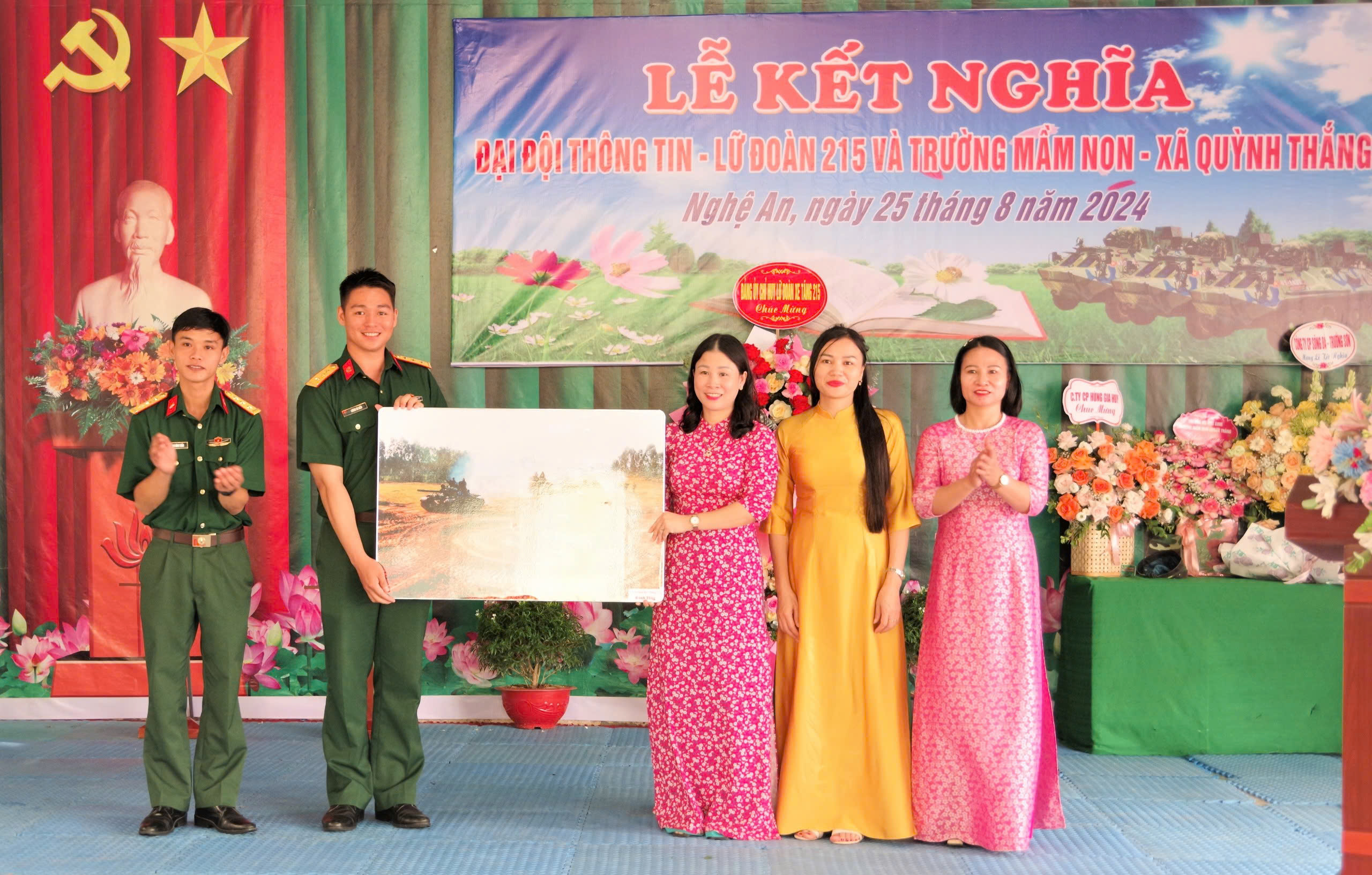 Sáng ngày 25/8, tại xã Quỳnh Thắng, huyện Quỳnh Lưu, tỉnh Nghệ An đã diễn ra Lễ kết nghĩa giữa Đại đội Thông tin/Lữ đoàn xe tăng 215 và Trường Mầm non Quỳnh Thắng.