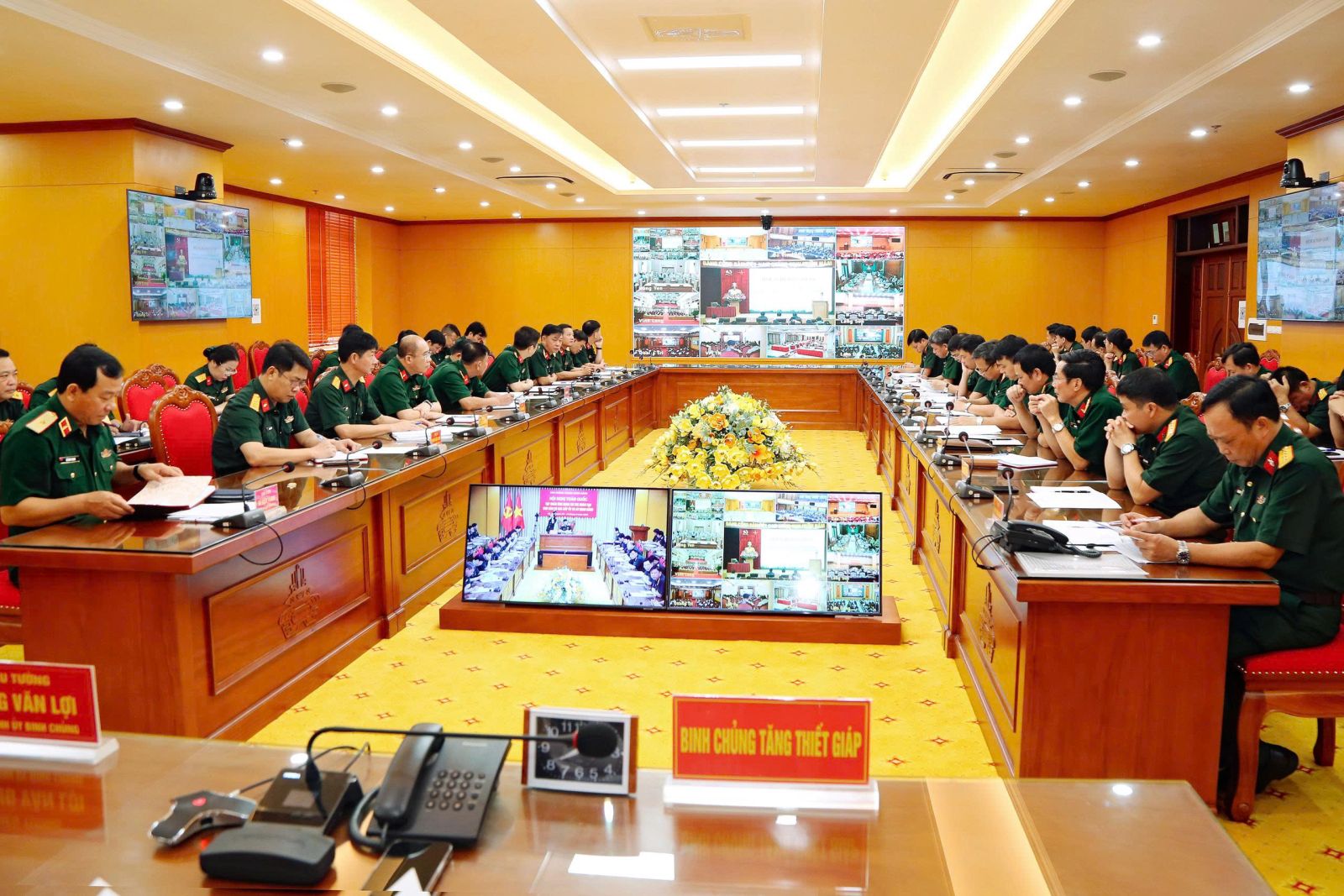 Tại điểm cầu Bộ tư lệnh Binh chủng, chủ trì Hội nghị Thiếu tướng Hoàng Văn Lợi, Bí thư Đảng ủy, Chính ủy Binh chủng; dự Hội nghị có 09 đồng chí Đảng ủy viên, Đảng ủy Binh chủng; tham dự hội nghị Bộ Tham mưu có các đồng chí Đảng ủy viên Đảng ủy Bộ Tham mưu, Trợ lý Tổ chức, 04 đồng chí Ban công nghệ thông tin, Chánh Văn phòng, Trưởng ban Bảo mật; Cục Chính trị: các đồng chí Phó Chủ nhiệm Chính trị, Trưởng, Phó phòng Tuyên huấn, Tổ chức, Cán bộ, Bảo vệ An ninh, trợ lý: Dân vận, Chính sách, KHTH, Trưởng ban Công tác Quần chúng; trợ lý Đảng ủy phòng Tổ chức; Cục Hậu cần- Kỹ thuật: các đồng chí Đảng ủy viên viên Đảng ủy Cục Hậu cần-Kỹ thuật, trợ lý Tổ chức. Tại điểm cầu trường Sĩ quan Tăng thiết giáp: Chủ trì Hội nghị, Đồng chí Đại tá Nguyễn Tiến Ngọc, Đảng ủy viên Đảng ủy Binh chủng, Chính ủy Nhà trường; tham dự Hội nghị có các đồng chí Đảng ủy viên Đảng ủy Nhà trường; các đồng chí Phó CNCT; trưởng ban tổ chức, Cán bộ, Tuyên huấn, CNTT; các đồng chí Chỉ huy trưởng, Chính trị viên (Chính trị viên phó), Trưởng ban (Phụ trách) Ban Chính trị, trợ lý tổ chức Trung tâm Huấn luyện Tổng hợp, Xưởng sửa chữa X32, Kho Y.