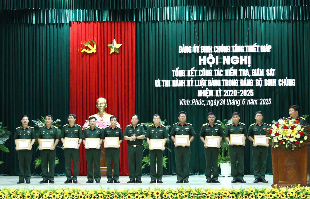 Cũng trong dịp này, Thủ trưởng Bộ Tư lệnh đã trao tặng Giấy khen cho 09 tập thể và 10 cá nhân có thành tích xuất sắc trong công tác kiểm tra giám sát, thi hành kỷ luật đảng trong Đảng bộ Binh chủng nhiệm kỳ 2020 - 2025.