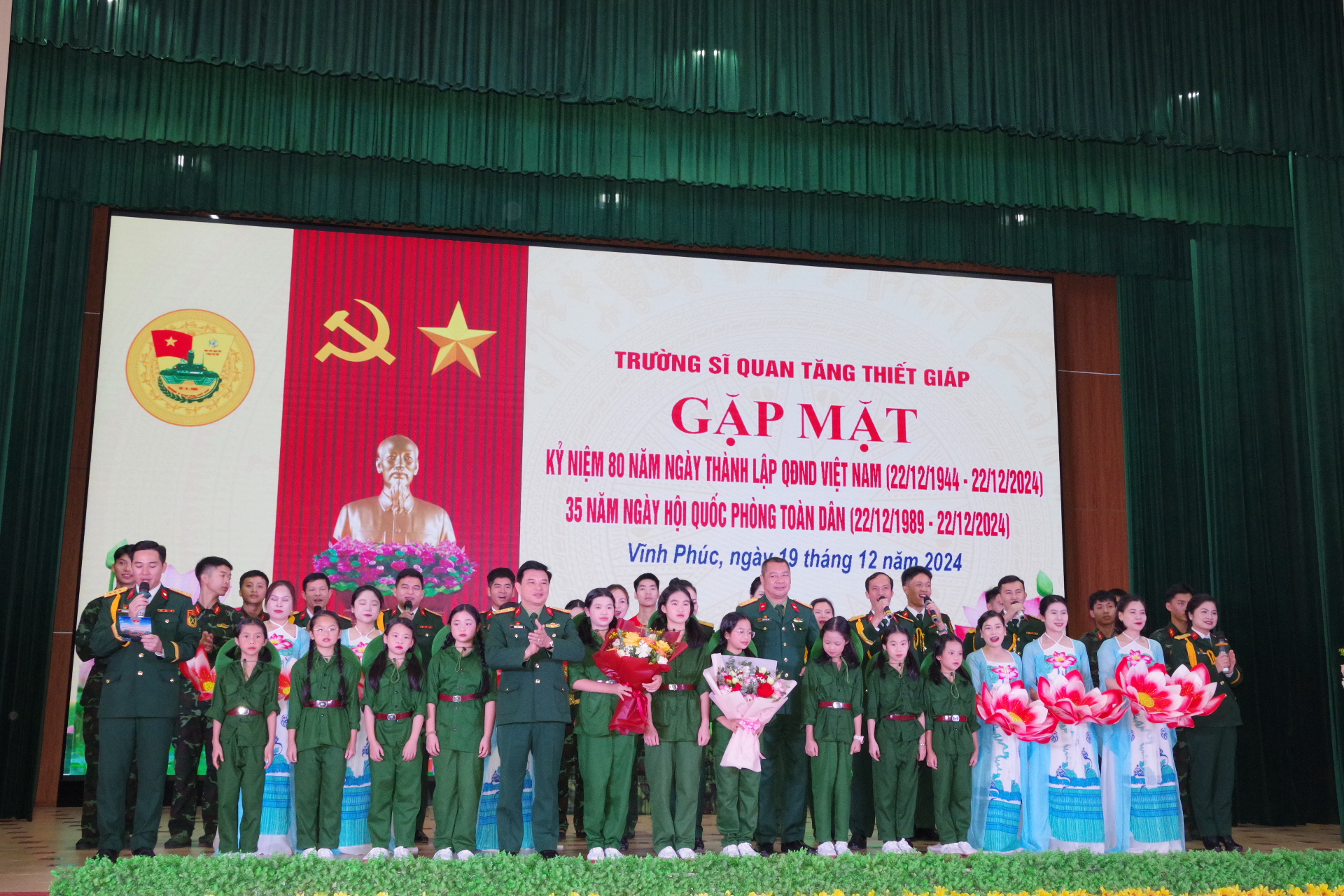 Mở đầu buổi gặp mặt một chương trình nghệ thuật đặc sắc với chủ đề: “Vững bước dưới Quân kỳ Quyết thắng”, Chương trình do Trường Sĩ quan Tăng thiết giáp phối hợp với đơn vị kết nghĩa biểu diễn. Ôn lại truyền thống 80 năm xây dựng chiến đấu và trưởng thành của Quân đội nhân dân Việt Nam, Đại tá Đặng Tuấn Anh - Hiệu trưởng Nhà trường, nhấn mạnh: Đứng trước những yêu cầu thực tiễn của cách mạng, tháng 12-1944, Chủ tịch Hồ Chí Minh đã ra Chỉ thị thành lập Đội Việt Nam Tuyên truyền Giải phóng quân và giao cho đồng chí Võ Nguyên Giáp phụ trách. Sau một thời gian chuẩn bị, ngày 22-12-1944, tại khu rừng giữa tổng Hoàng Hoa Thám và Trần Hưng Đạo thuộc châu Nguyên Bình, tỉnh Cao Bằng (nay là xóm Nà Sang, xã Tam Kim, huyện Nguyên Bình, tỉnh Cao Bằng), Đội Việt Nam Tuyên truyền Giải phóng quân được thành lập, gồm 34 chiến sĩ. Đây là một sự kiện lịch sử trọng đại của cách mạng Việt Nam. Ngày 22-12-1944, ngày thành lập Đội Việt Nam Tuyên truyền Giải phóng quân - đội quân chủ lực đầu tiên của Quân đội nhân dân Việt Nam, được lấy làm Ngày thành lập Quân đội nhân dân Việt Nam.