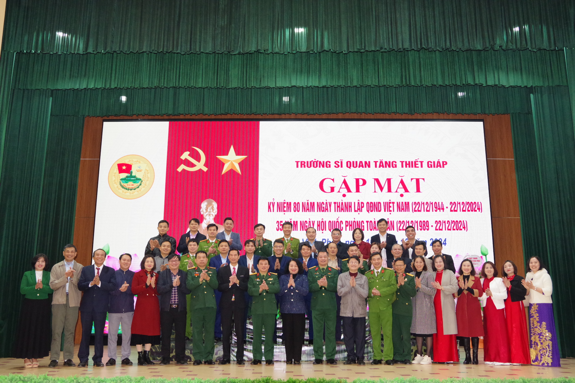 Trong không khí vui tươi, phấn khởi của toàn Đảng, toàn dân và toàn quân ta đẩy mạnh các hoạt động chào mừng kỷ niệm 80 năm Ngày thành lập Quân đội nhân dân Việt Nam (22/12/1944 - 22/12/2024), 35 năm Ngày hội Quốc phòng toàn dân (22/12/1989 - 22/12/2024). Sáng 19/12/2024, Trường Sĩ quan Tăng thiết tổ chức buổi gặp mặt đoàn kết quân dân nhân ôn lại truyền thống 80 năm xây dựng chiến đấu và trưởng thành của Quân đội nhân dân Việt Nam, 35 năm Ngày hội Quốc phòng toàn dân.