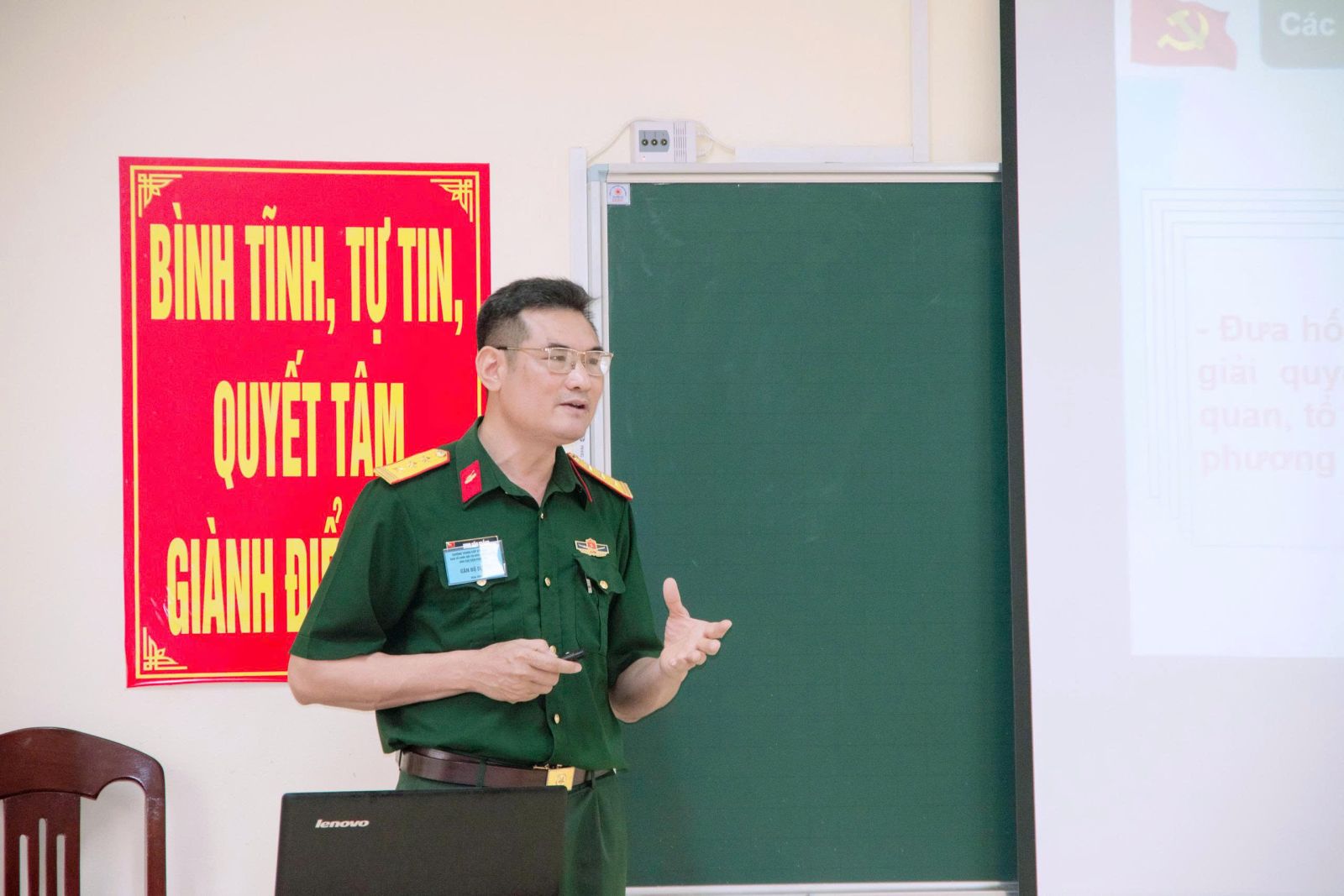 Phát biểu tại bế mạc Hội thi, Thượng tá Nguyễn Việt Hưng, Phó Chính ủy Nhà trường biểu dương sự nỗ lực, cố gắng, tích cực chủ động của các cơ quan, khoa giáo viên, đơn vị và các thí sinh trong tổ chức thực hiện và tham gia Hội thi. Đồng chí Phó Chính ủy Nhà trường nhấn mạnh: Hội thi góp phần làm sáng rõ những quan điểm, chủ trương, đường lối của Đảng, Nhà nước và Quân đội, thi đua thực hiện tốt Nghị quyết Đại hội lần thứ XIV của Đảng, Nghị quyết Đại hội Đảng các cấp nhiệm kỳ 2026-2031; đánh giá đúng thực chất, hiệu quả công tác báo cáo viên, tuyên truyền miệng và năng lực của đội ngũ báo cáo viên trong quá trình công tác tại đơn vị. Đồng thời yêu cầu trong thời gian tới, các cấp ủy, chỉ huy, chính trị viên các cấp và các thí sinh phát huy những kết quả đạt được, đẩy mạnh công tác tuyên truyền, tạo sự đồng thuận cao, góp phần xây dựng cơ quan, khoa giáo viên, đơn vị và Nhà trường VMTD “Mẫu mực, tiêu biểu”.