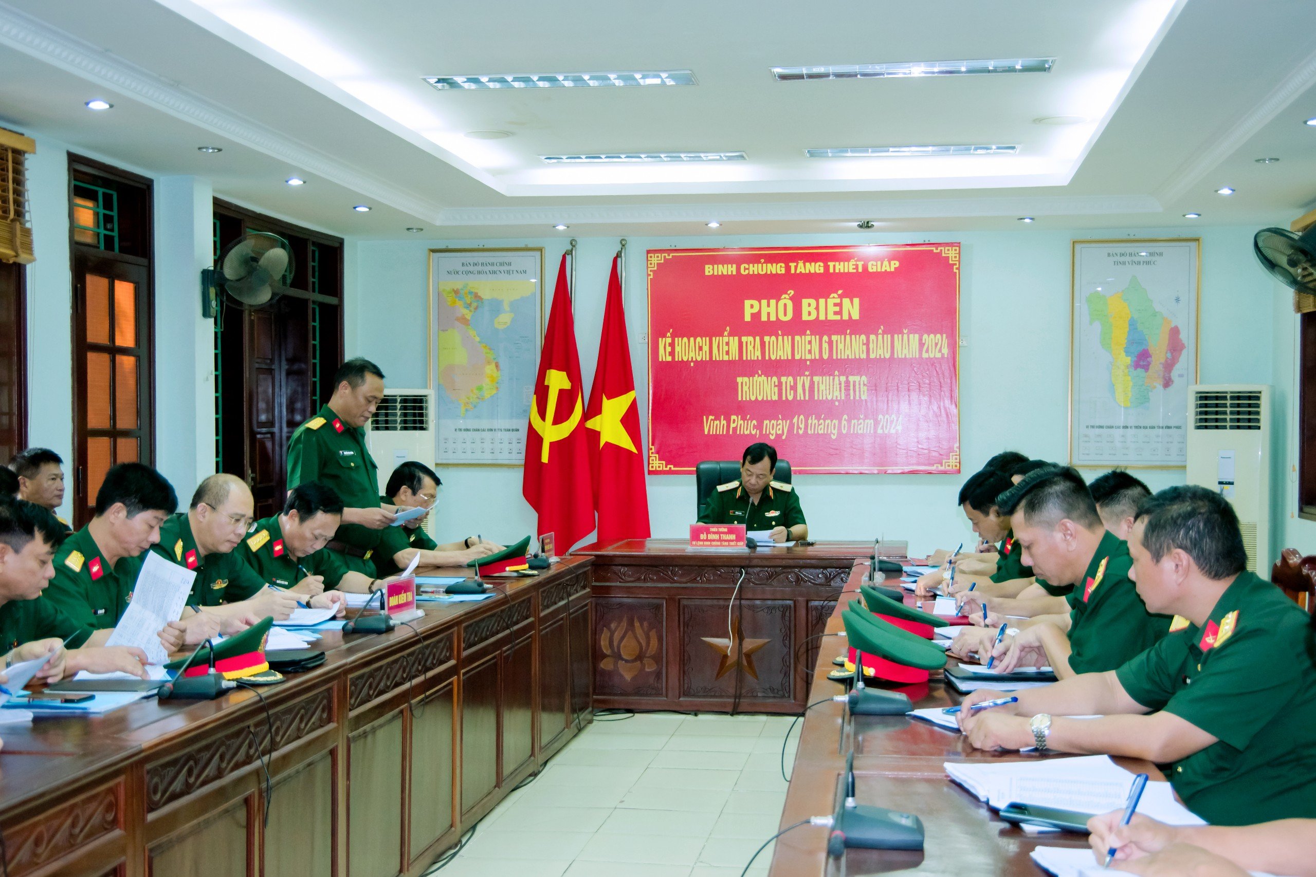 Ngày 19/6, tại Vĩnh Phúc ,Đoàn công tác của Binh chủng do Đồng chí Thiếu tướng Đỗ Đình Thanh, Tư lệnh Binh chủng làm trưởng đoàn đã tiến hành kiểm tra toàn diện 6 tháng đầu năm 2024 tại Trường Trung cấp Kỹ thuật Tăng thiết giáp.