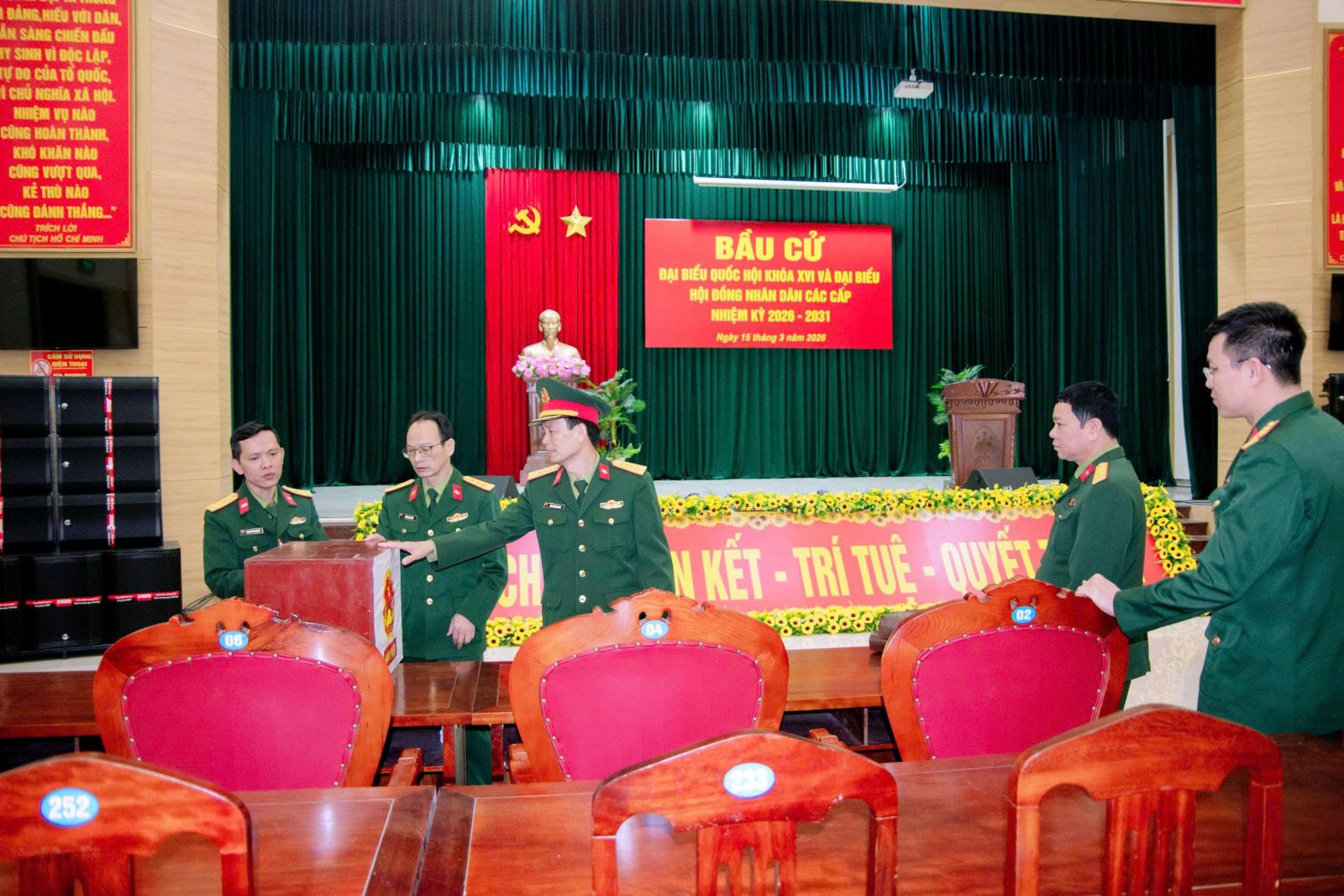 Ngay từ đầu giờ sáng ngày 15/3/2026, tại Xưởng Sửa chữa xe tăng X32 (thuộc Thôn 7, xã Tam Dương, tỉnh Phú Thọ); cán bộ, quân nhân chuyên nghiệp và chiến sĩ của Xưởng X32 và Kho Y đã có mặt đông đủ tại khu vực bỏ phiếu (Hội trường Xưởng X32) trong không khí trang nghiêm, phấn khởi, thể hiện rõ tinh thần trách nhiệm và ý thức của công dân đối với sự kiện chính trị quan trọng của đất nước.