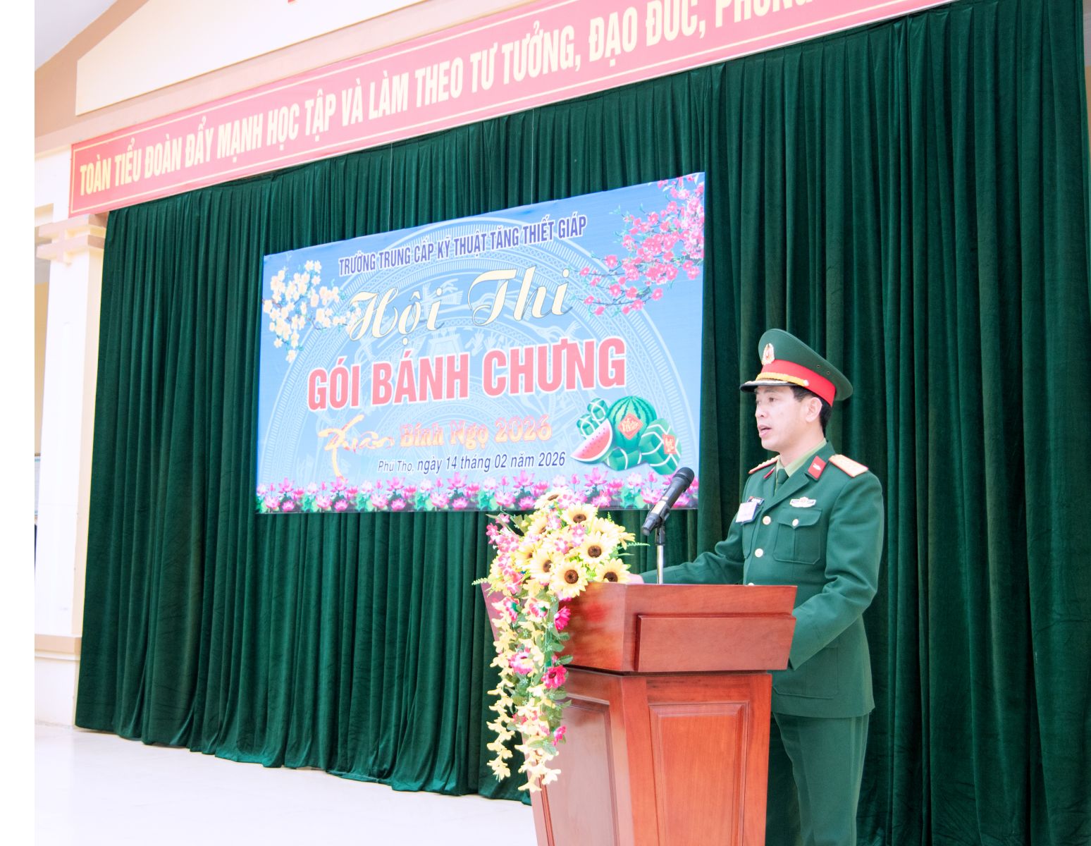 Sáng ngày 14/02, tại Phú Thọ, Trường Trung cấp Kỹ thuật Tăng thiết giáp tổ chức Hội thi “Gói bánh chưng” xuân Bính Ngọ 2026. Dự chỉ đạo và động viên các đội thi có đồng chí Đại tá Phạm Huy Tuấn, Hiệu trưởng Nhà trường; các đồng chí trong Ban giám hiệu, Ban Tổ chức, Ban giám khảo; thủ trưởng các cơ quan, khoa giáo viên, đơn vị; các đội dự thi cùng đơn vị kết nghĩa và cán bộ, chiến sĩ Nhà trường.