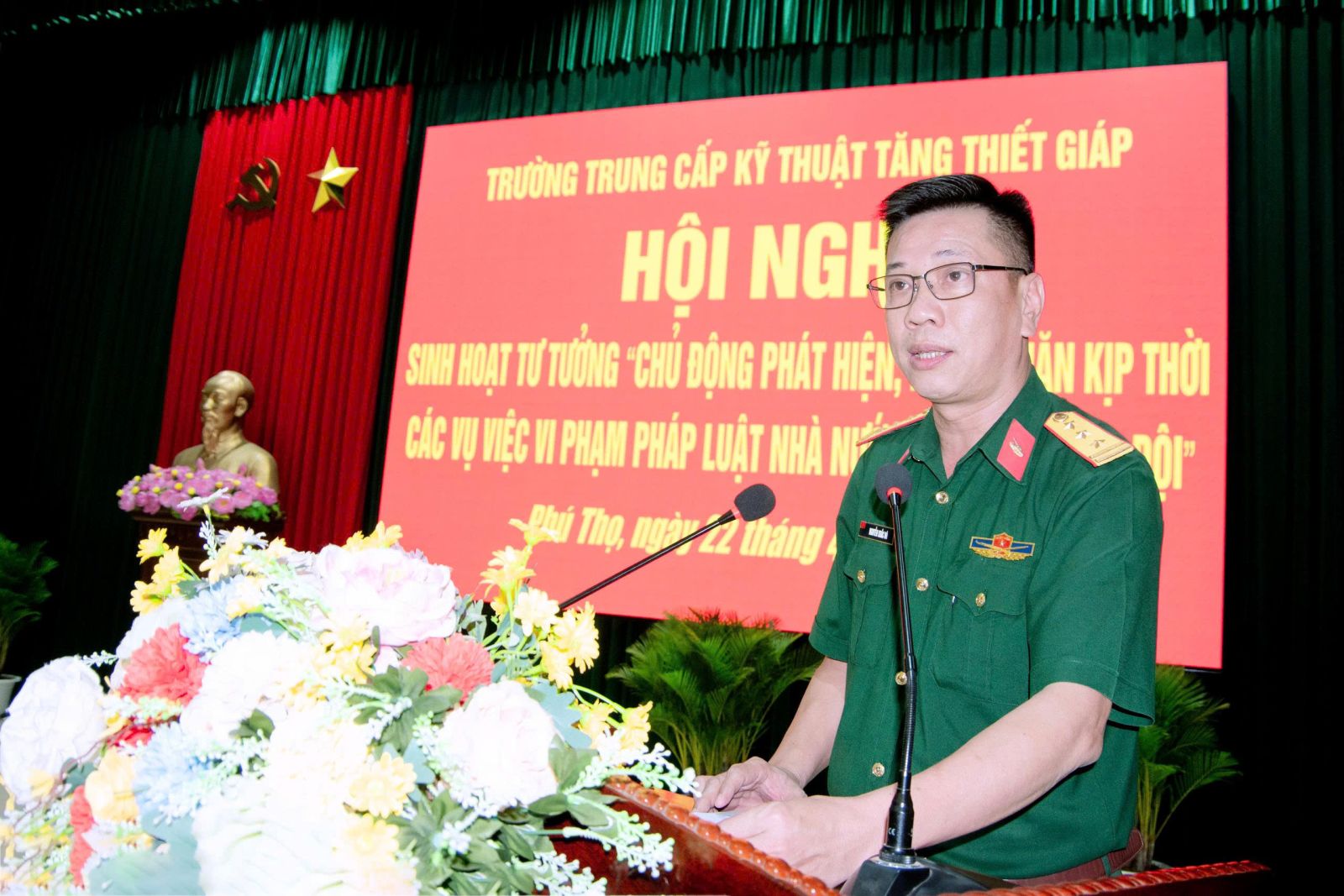 Trường Trung cấp Kỹ thuật Tăng thiết giáp tổ chức sinh hoạt tư tưởng “Chủ động phát hiện, ngăn chặn kịp thời các vụ việc vi phạm pháp luật nhà nước, kỷ luật quân đội”
