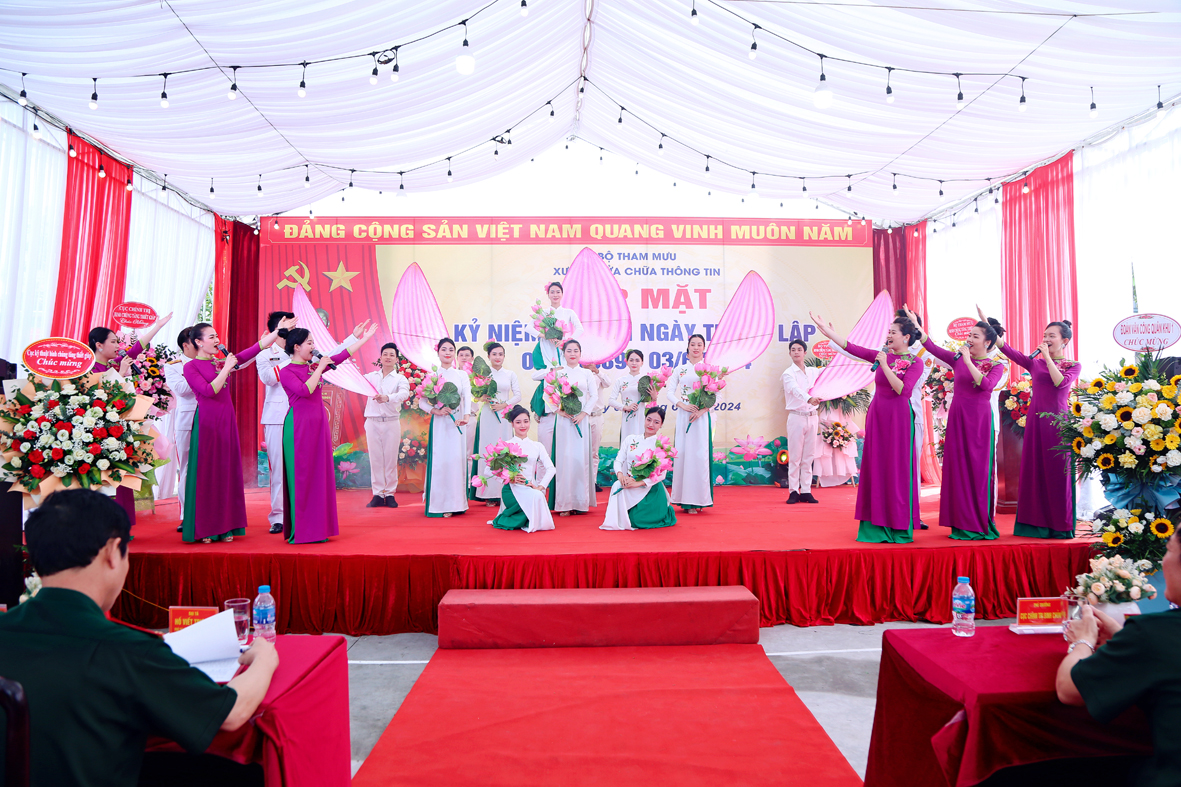 Đại tá Hồ Viết Trương, Phó Tư lệnh - TMT Binh chủng dự và phát biểu chúc mừng. Tham dự có Thủ trưởng các cơ quan Bộ Tư lệnh, đại biểu các cơ quan, đơn vị trong Binh chủng; các đồng chí cán bộ, nguyên là cán bộ Ngành Thông tin qua các thời kỳ; đại biểu cấp ủy Đảng, chính quyền nhân dân địa phương, các đơn vị kết nghĩa cùng toàn thể cán bộ, QNCN, CNVQP của Xưởng.