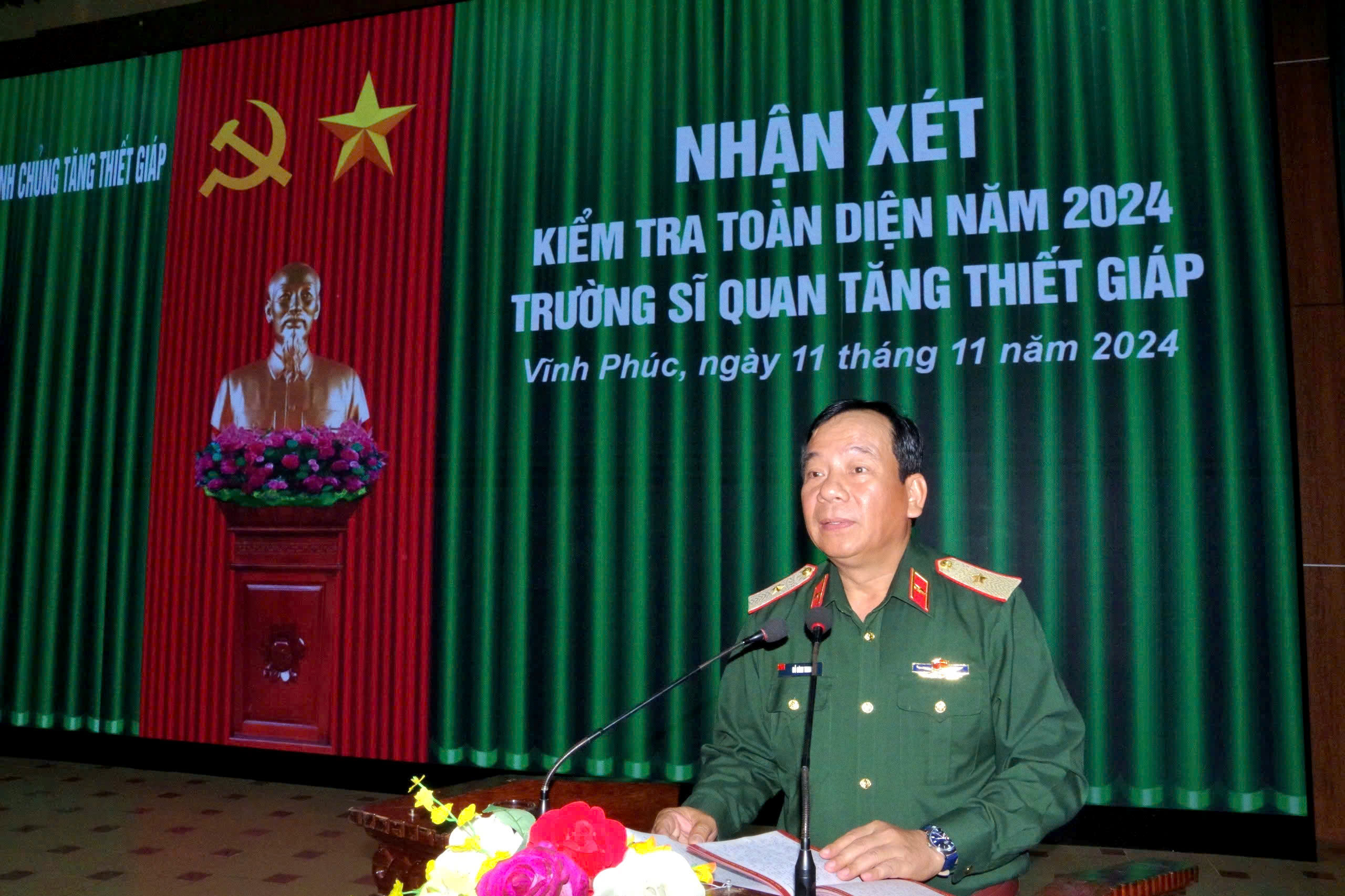 Kết quả kiểm tra toàn diện năm 2024 cho thấy: Trường Sĩ quan Tăng thiết giáp đã quán triệt và thực hiện nghiêm túc các nghị quyết, chỉ thị, quy chế, quy định, hướng dẫn của các cấp, triển khai thực hiện có chất lượng các mặt công tác; tập trung quán triệt, thực hiện nghiêm mệnh lệnh, chỉ thị các cấp; bám sát các phương châm giáo dục đào tạo; duy trì tốt nền nếp, chế độ huấn luyện, sẵn sàng chiến đấu; quản lý chặt chẽ quân số, duy trì kỷ luật; phát huy hiệu quả vai trò hoạt động công tác Đảng, công tác chính trị với nhiều mô hình hay, cách làm sáng tạo; thường xuyên nâng cao nhận thức những vấn đề mới của chính trị xã hội, chính sách, pháp luật; có nhiều cố gắng trong công tác quản lý tư tưởng; bảo đảm tốt hậu cần, kỹ thuật trong tổ chức thực hiện nhiệm vụ thường xuyên cũng như sẵn sàng chiến đấu. Nội bộ đoàn kết, thống nhất, hoàn thành khá tốt các nhiệm vụ được giao, có nhiệm vụ hoàn thành tốt. Tham gia hội thi, hội thao các cấp đạt nhiều giải cao; kết quả kiểm tra các nội dung đều đạt khá và giỏi, đơn vị đạt khá. Đặc biệt, Nhà trường đã chấp hành nghiêm kế hoạch kiểm tra toàn diện của Binh chủng, làm công tác chuẩn bị chu đáo, tạo điều kiện thuận lợi để Đoàn kiểm tra thực hiện nhiệm vụ.