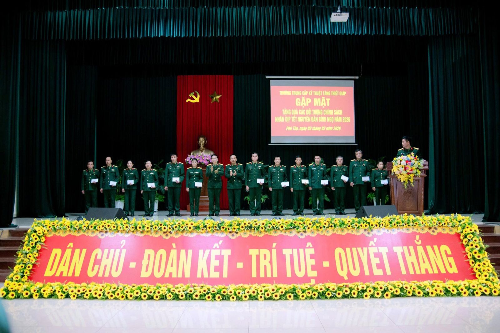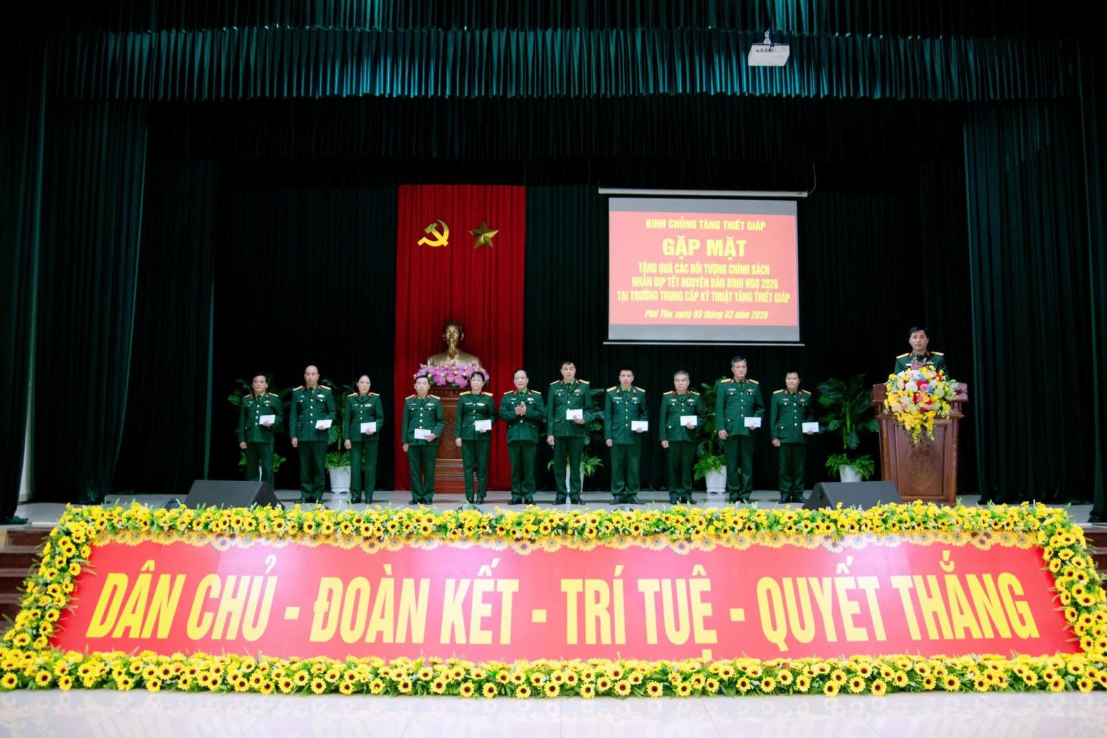 Chiều ngày 03/02, tại Phú Thọ, nhân dịp Tết Nguyên đán Bính Ngọ 2026, Binh chủng Tăng thiết giáp; Trường Trung cấp Kỹ thuật Tăng thiết giáp đã tổ chức gặp mặt và tặng quà cho các đối tượng chính sách của Nhà trường. Đại tá Nguyễn Thiện Thanh, Ủy viên Ban Thường vụ, Phó Chính ủy Binh chủng dự và chủ trì buổi gặp mặt.