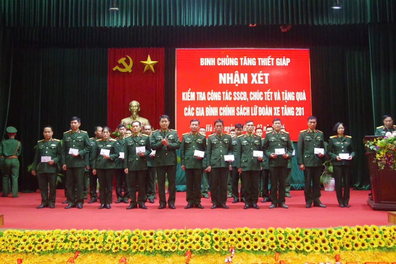 Binh chủng Tăng thiết giáp kiểm tra công tác SSCĐ, chúc tết và tặng quà các gia đình chính sách Lữ đoàn xe tăng 201