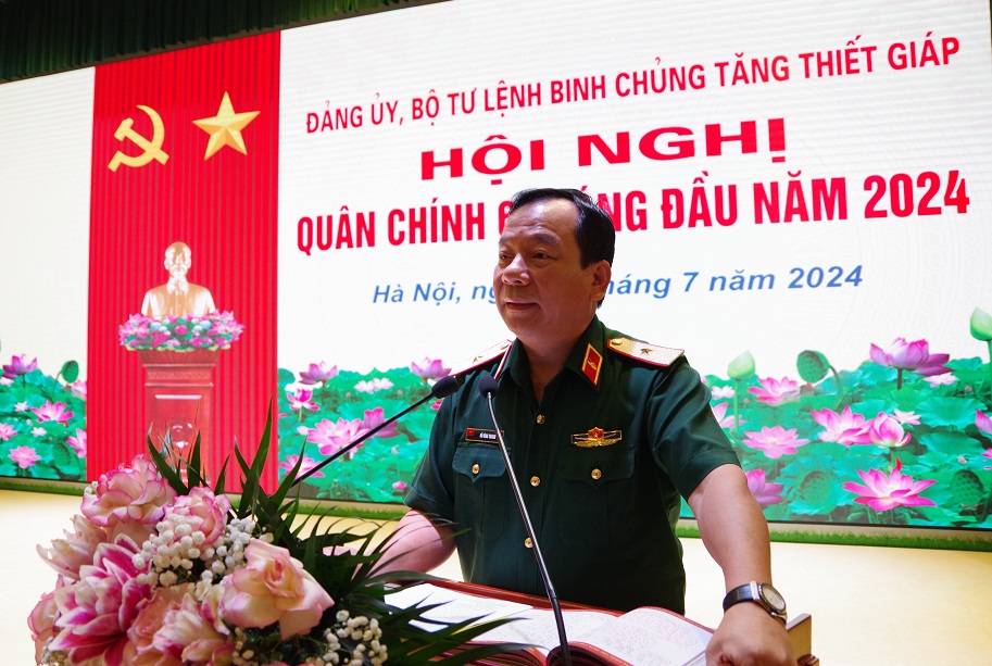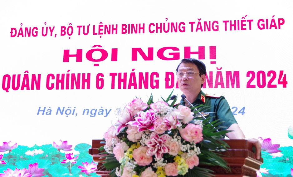 Hội nghị đã nghe đồng chí Thiếu tướng Nguyễn Đức Dinh, Bí thư Đảng ủy, Chính ủy Binh chủng quán triệt Nghị quyết lãnh đạo thực hiện nhiệm vụ 6 tháng cuối năm 2024 và phát động phong trào thi đua cao điểm chào mừng kỷ niệm 65 năm ngày Truyền thống Bộ đội Tăng thiết giáp; 80 năm ngày thành lập QĐND Việt Nam, 35 năm ngày hội Quốc phòng toàn dân.