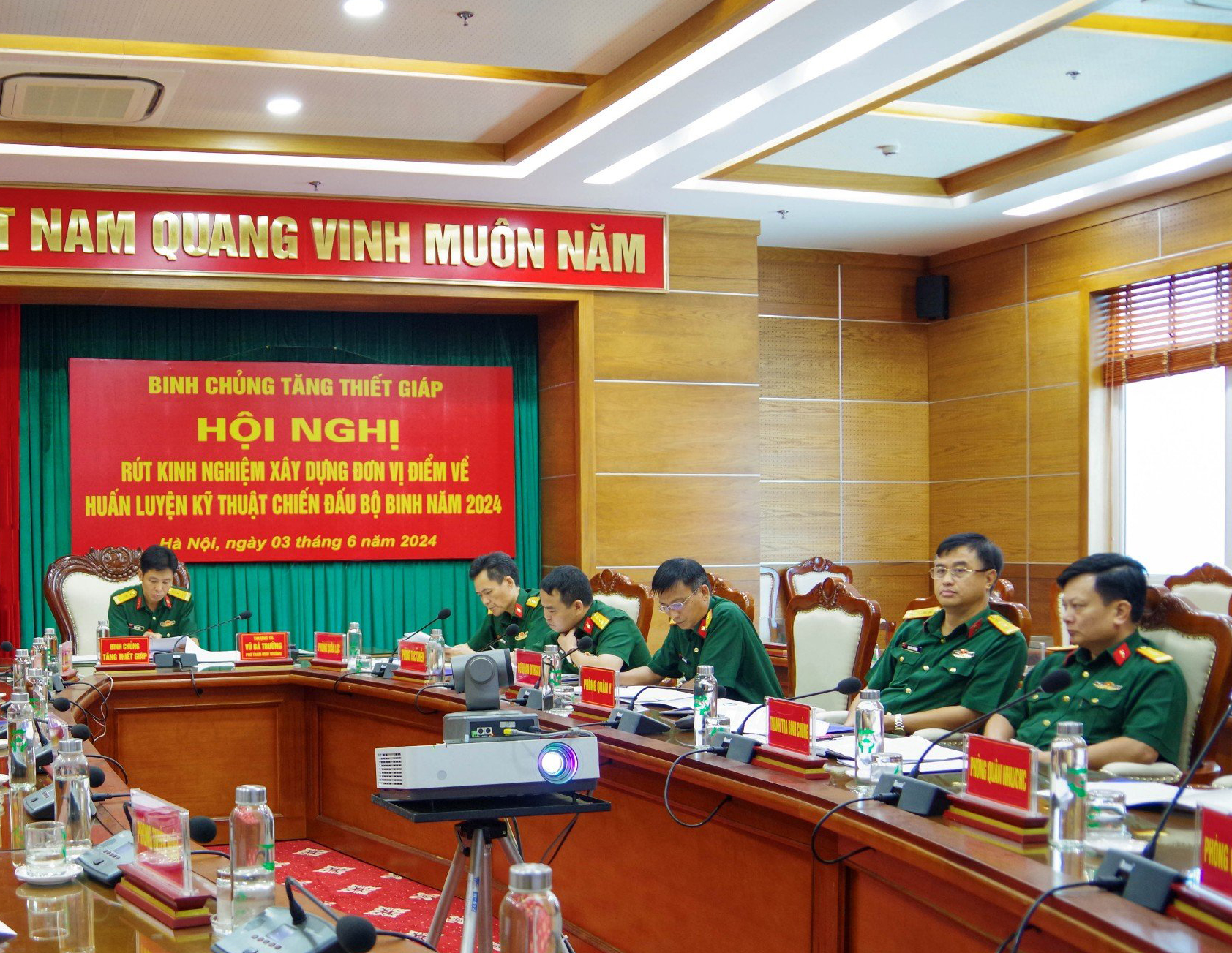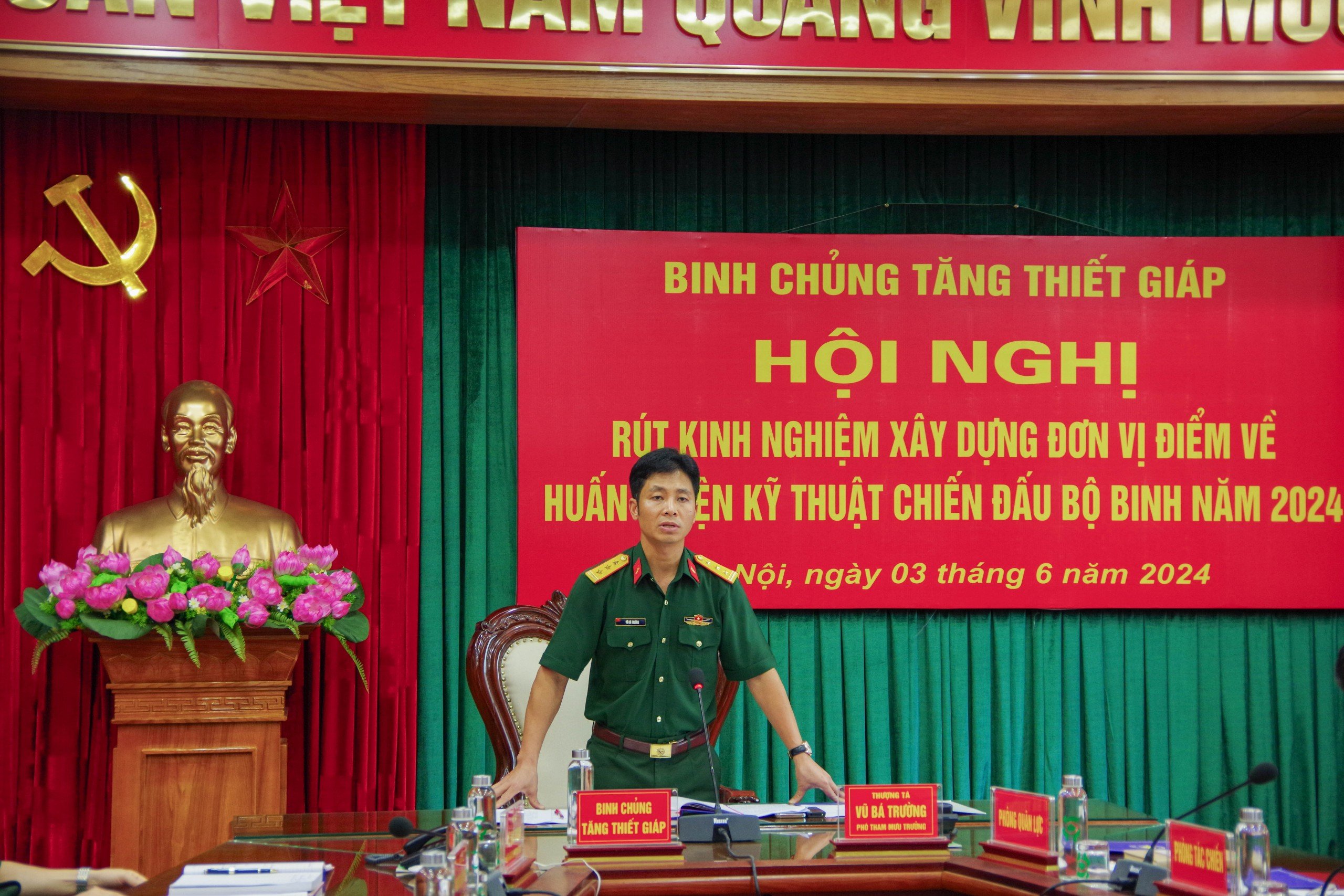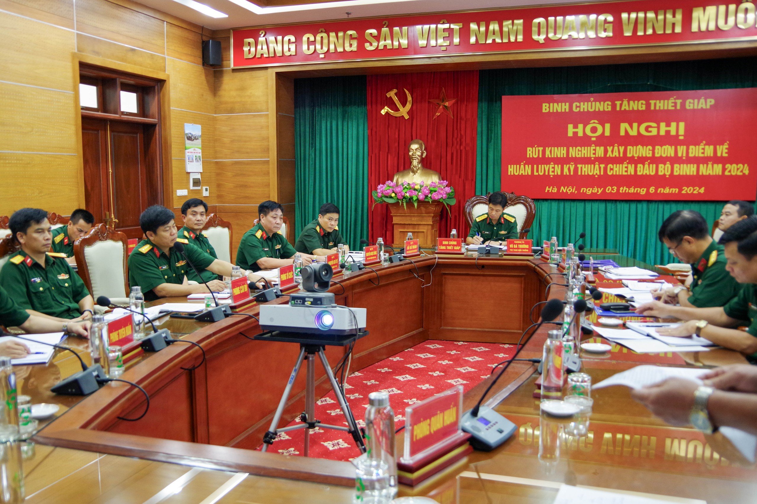 Chiều 03/6, tại Hà Nội, Binh chủng Tăng thiết giáp tổ chức Hội nghị rút kinh nghiệm xây dựng đơn vị điểm về huấn luyện kỹ thuật chiến đấu bộ binh (CĐBB) năm 2024. Hội nghị tổ chức trực tuyến đến các lữ đoàn, nhà trường và Phân hiệu miền Nam.
