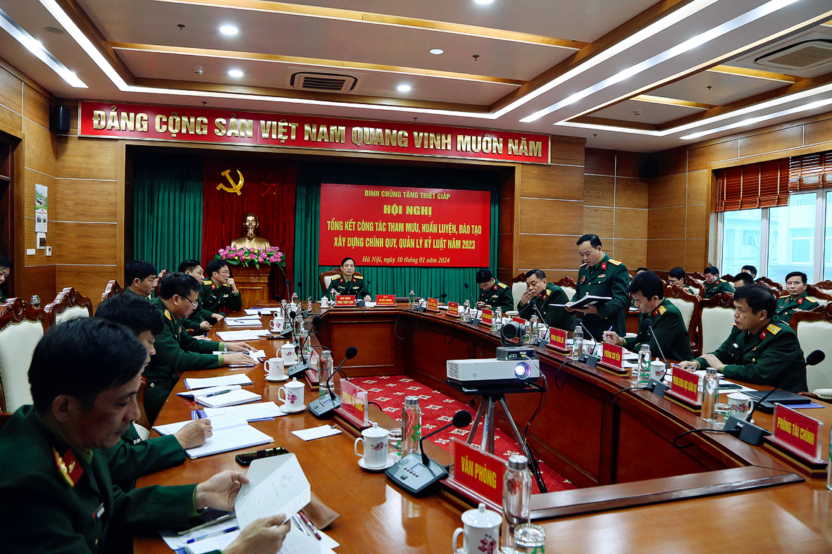 Chiều 10.1, tại Hà Nội, Binh chủng Tăng thiết giáp tổ chức Hội nghị tổng kết công tác Tham mưu, huấn luyện, đào tạo và xây dựng chính quy, quản lý kỷ luật năm 2023, triển khai nhiệm vụ năm 2024. (Hội nghị được tổ chức bằng hình thức trực tiếp kết hợp trực tuyến tại các điểm cầu trong toàn Binh chủng).