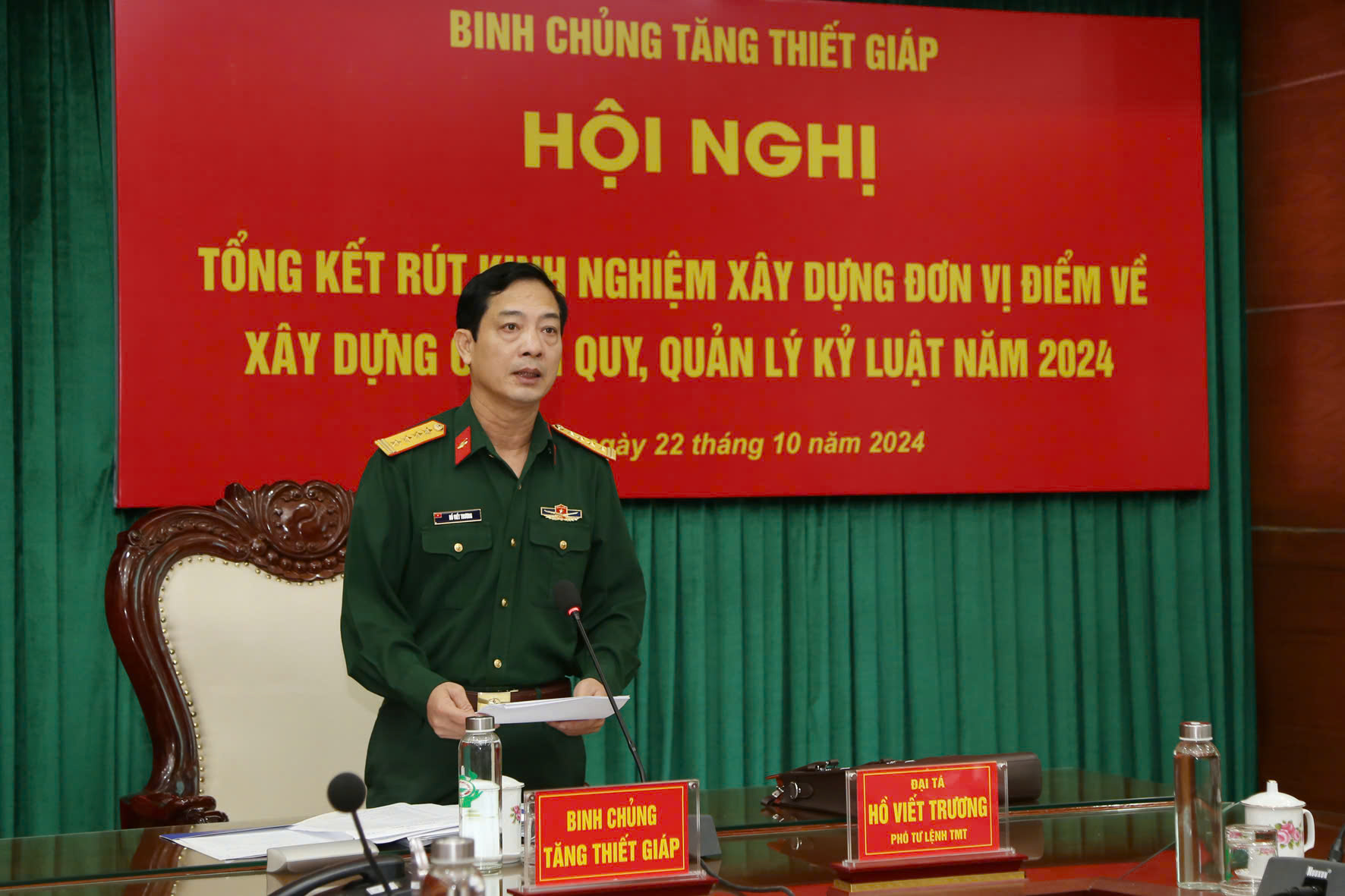 Sáng 22/10, tại Hà Nội, Binh chủng Tăng thiết giáp tổ chức Hội nghị tổng kết rút kinh nghiệm xây dựng đơn vị điểm về xây dựng chính quy, quản lý kỷ luật năm 2024. (Hội nghị được tổ chức trực tiếp, kết hợp trực tuyến tại các điểm cầu trong toàn Binh chủng).