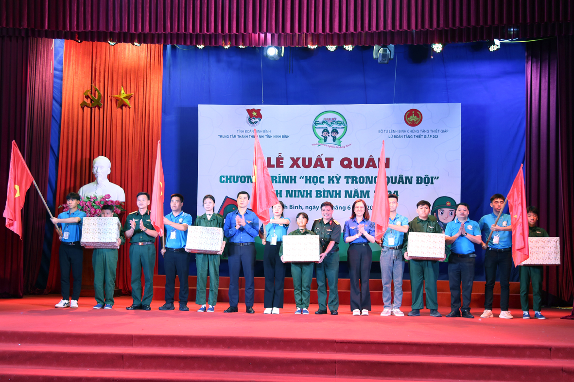 Sáng 5/6, tại Trung tâm Thanh thiếu nhi tỉnh Ninh Bình, Ban thường vụ Tỉnh đoàn Ninh Bình phối hợp với Lữ đoàn Tăng thiết giáp 202/Binh chủng Tăng thiết giáp tổ chức Lễ xuất quân “Học kỳ trong Quân đội” tỉnh Ninh Bình năm 2024.