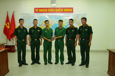 Đại tá Lê Xuân Thành, Chính uỷ Lữ đoàn tặng Giấy khen cho Binh nhất Đào Xuân Quyến.