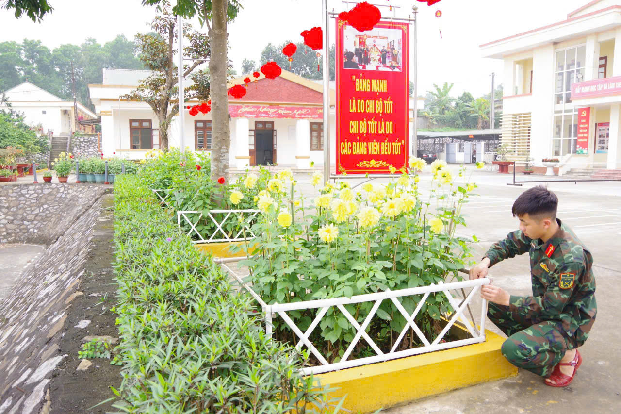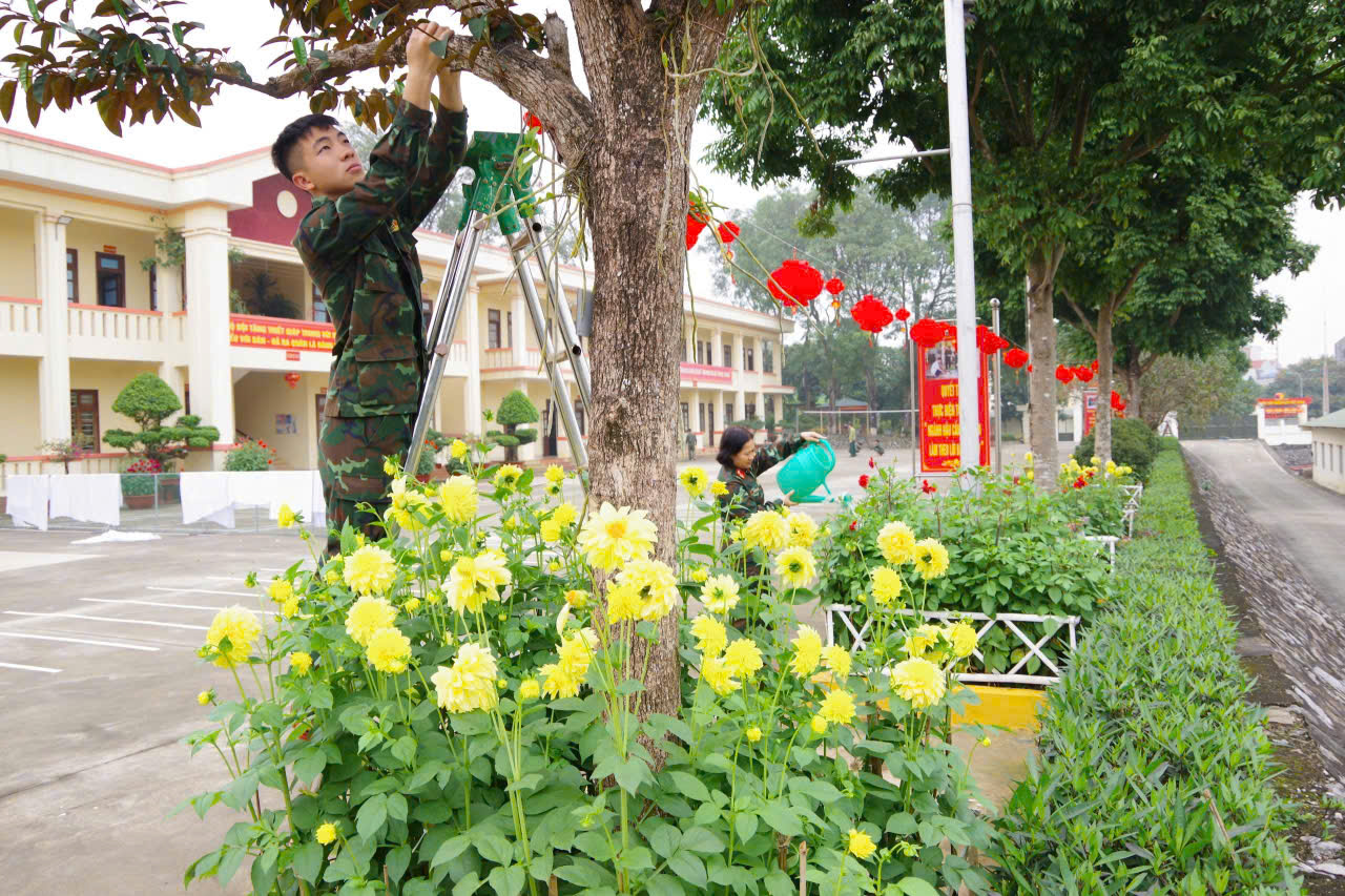 Tô điểm cho mùa Xuân tại Tiểu đoàn, các đơn vị đã tích cực chỉnh trang, củng cố cảnh quan, trang trí phòng đón Xuân, củng cố, làm mới hệ thống chậu hoa, cây cảnh, trồng nhiều loại hoa Tết như: Hoa Hồng, hoa Giấy, Thược dược…Đã chuẩn bị cho các hoạt động vui chơi, giải trí, giao lưu văn hóa văn nghệ, thể dục thể thao.