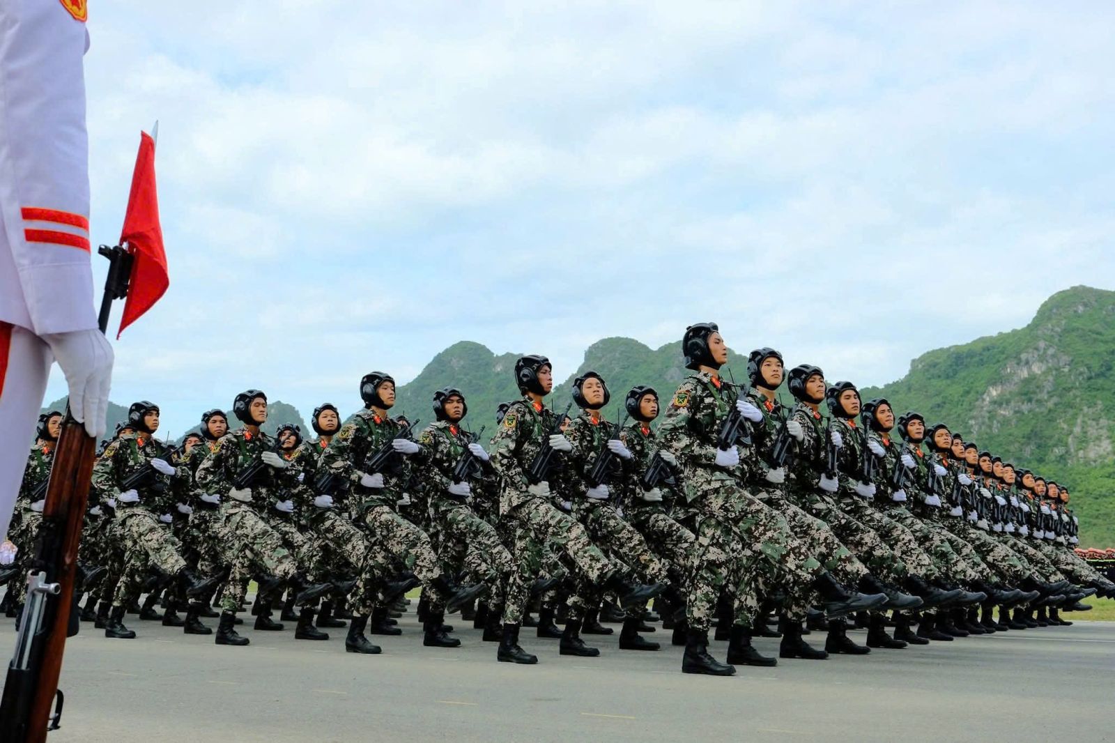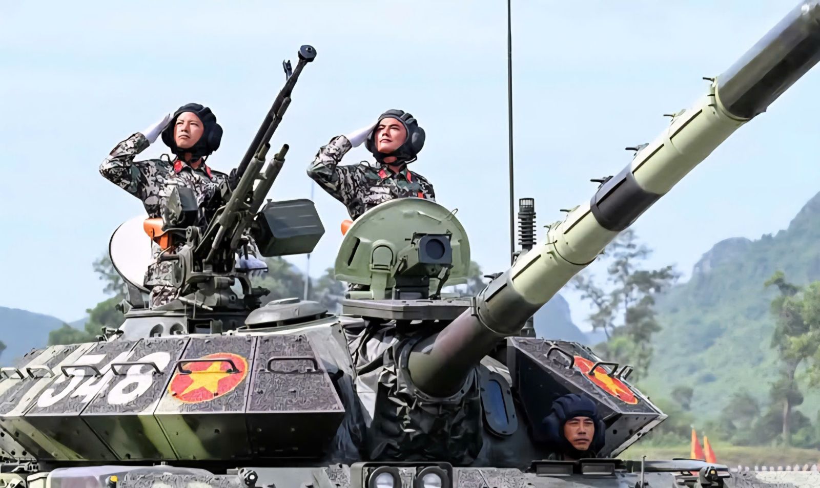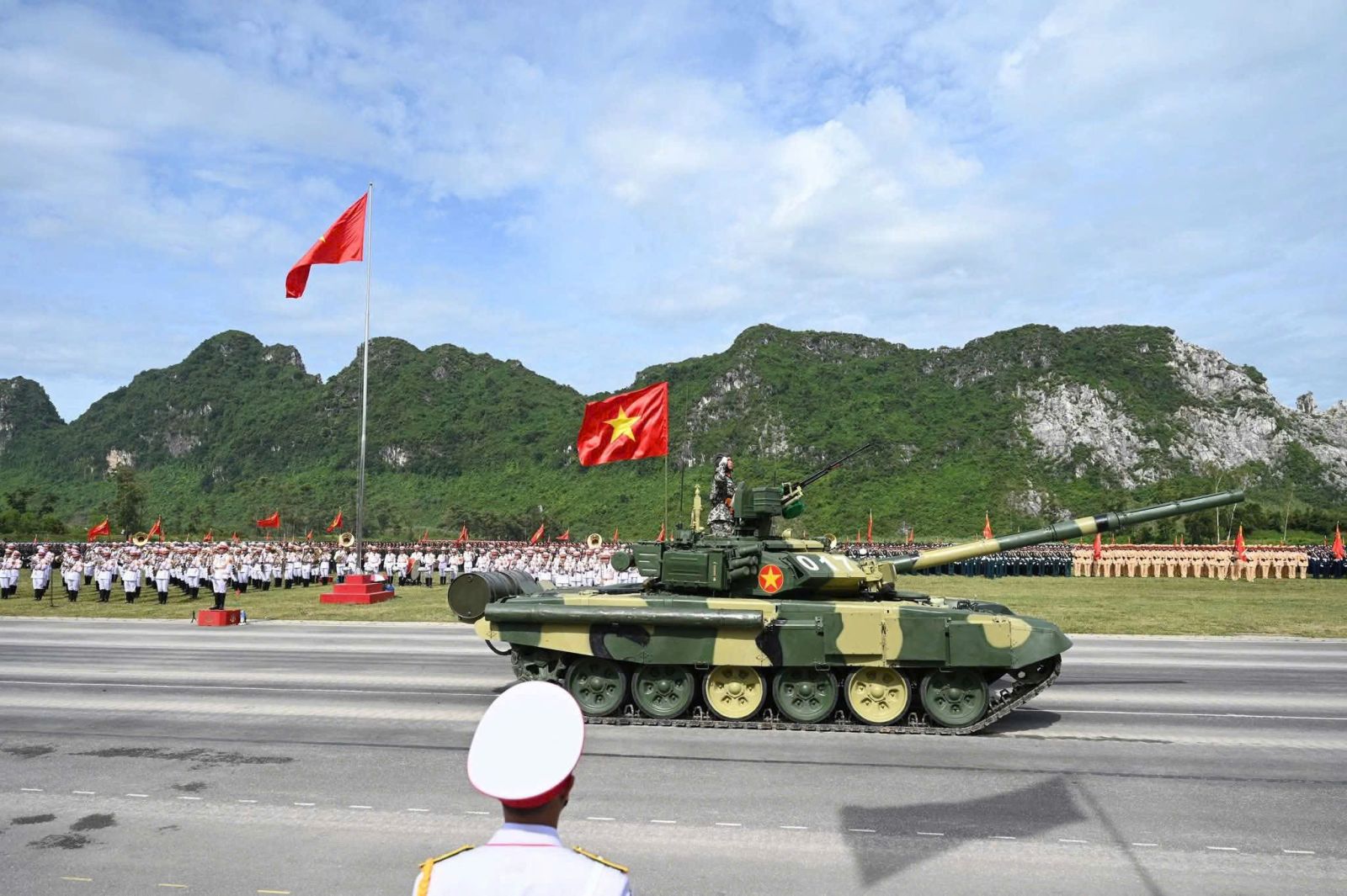 Dưới thời tiết nắng nóng khắc nghiệt của Thủ đô Hà Nội, 18 khối đứng và 43 khối đi với tư thế nghiêm trang, thực hiện động tác mạnh mẽ, chuẩn xác, thống nhất với ý chí quyết tâm hoàn thành tốt nhất nhiệm vụ.  Khối xe tăng, xe thiết giáp di chuyển trong đội hình cùng với 13 khối xe, pháo quân sự, xe đặc chủng công an, tất cả đều vận hành nhịp nhàng, thể hiện sức mạnh cơ động và khả năng sẵn sàng chiến đấu cao. Mỗi khí tài lướt qua không chỉ là sức mạnh vật chất, mà còn là biểu tượng cho ý chí bảo vệ vững chắc chủ quyền thiêng liêng của Tổ quốc.