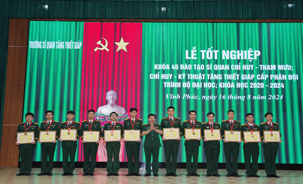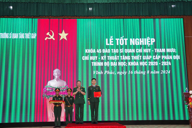 Thực hiện Kế hoạch công tác năm học 2023 - 2024, ngày 16/8/2024, Trường Sĩ quan Tăng thiết giáp long trọng tổ chức Lễ tốt nghiệp cho học viên Khóa 45 đào tạo sĩ quan Chỉ huy - Tham mưu, Chỉ huy - Kỹ thuật Tăng thiết giáp cấp phân đội, trình độ đại học (gọi tắt là Khóa 45ĐH, ĐK). Đồng chí Thiếu tướng Nguyễn Đức Dinh - Bí thư Đảng ủy, Chính ủy Binh chủng dự và chỉ đạo buổi lễ. Chủ trì buổi lễ có Đại tá Đặng Tuấn Anh - Hiệu trưởng, Đại tá Nguyễn Tiến Ngọc - Chính ủy cùng các đồng chí trong Thường vụ Đảng ủy, Thủ trưởng Ban Giám hiệu Nhà trường, đại biểu các cơ quan chức năng Binh chủng, Thủ trưởng các cơ quan, khoa giáo viên, đơn vị; đại biểu 12 gia đình học viên Khóa 45ĐH, ĐK tốt nghiệp loại giỏi, các đồng chí cán bộ quản lý và 157 học viên Khóa 45ĐH, ĐK (khóa học 2020 - 2024) tốt nghiệp.