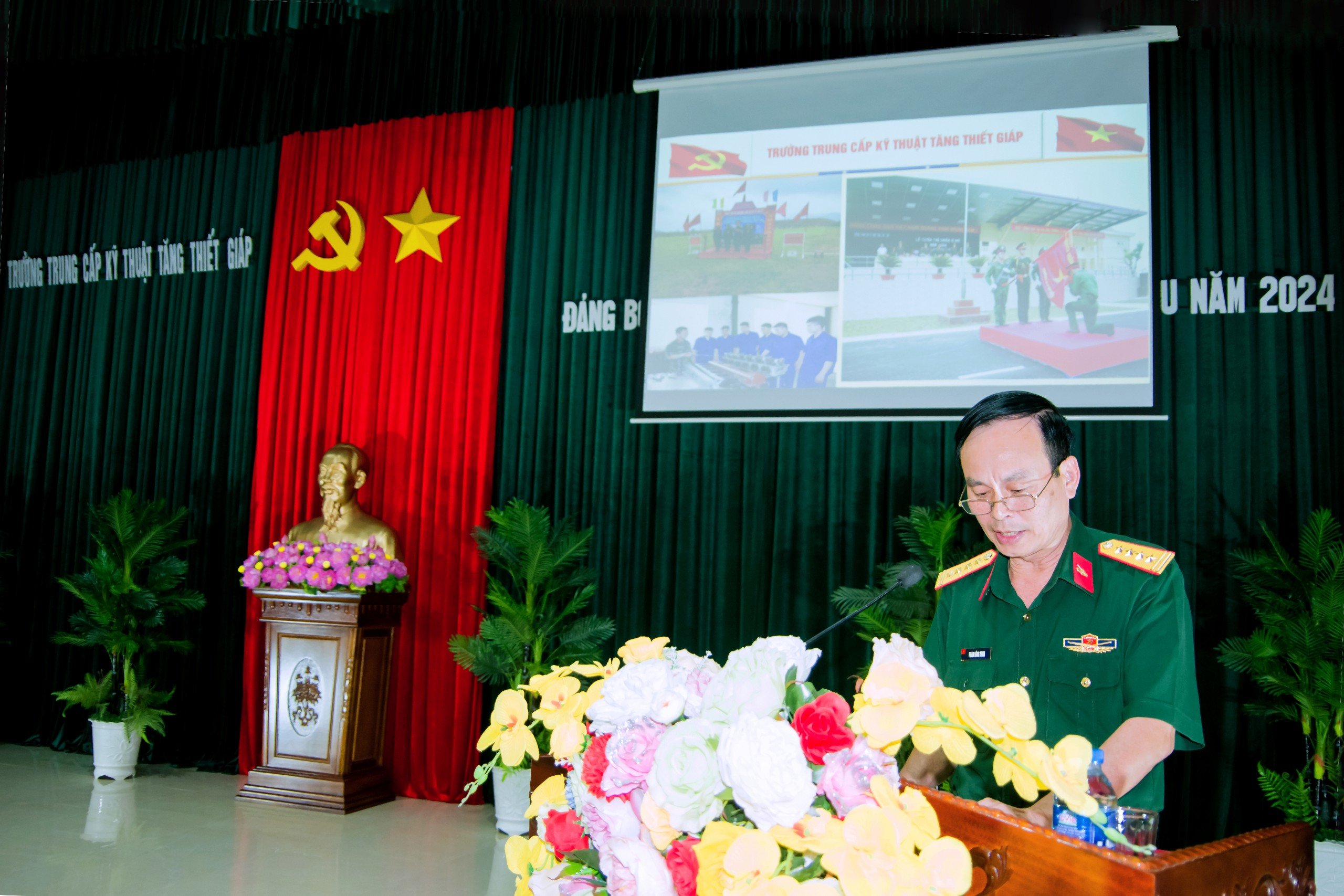 Đảng ủy Nhà trường đã tập trung lãnh đạo các cơ quan, khoa giáo viên, đơn vị hoàn thành tốt nhiệm vụ huấn luyện đào tạo, huấn luyện chiến sỹ mới và hoàn thành xuất sắc các nhiệm vụ đột xuất trên giao. Duy trì nghiêm nền nếp hoạt động công tác đảng, công tác chính trị; tổ chức thành công Đại hội Thi đua Quyết thắng giai đoạn 2019-2024; thường xuyên quan tâm thăm hỏi, tặng quà các đối tượng chính sách có hoàn cảnh khó khăn trong Nhà trường và địa bàn đóng quân; xây dựng tốt mối quan hệ đoàn kết nội bộ, đoàn kết quân dân. Bảo đảm đầy đủ vật chất Hậu cần cho các nhiệm vụ; đẩy mạnh công tác tăng gia, chăn nuôi, quân số khỏe đạt 99,52%; đăng cai Lễ Khai mạc và tham gia Hội thi “Doanh trại chính quy, xanh, sạch, đẹp” đạt chất lượng tốt. Bảo đảm tốt vũ khí, kỹ thuật, xe máy phục vụ Hội thi “Trung đội Tăng thiết giáp giỏi toàn quân” năm 2024.